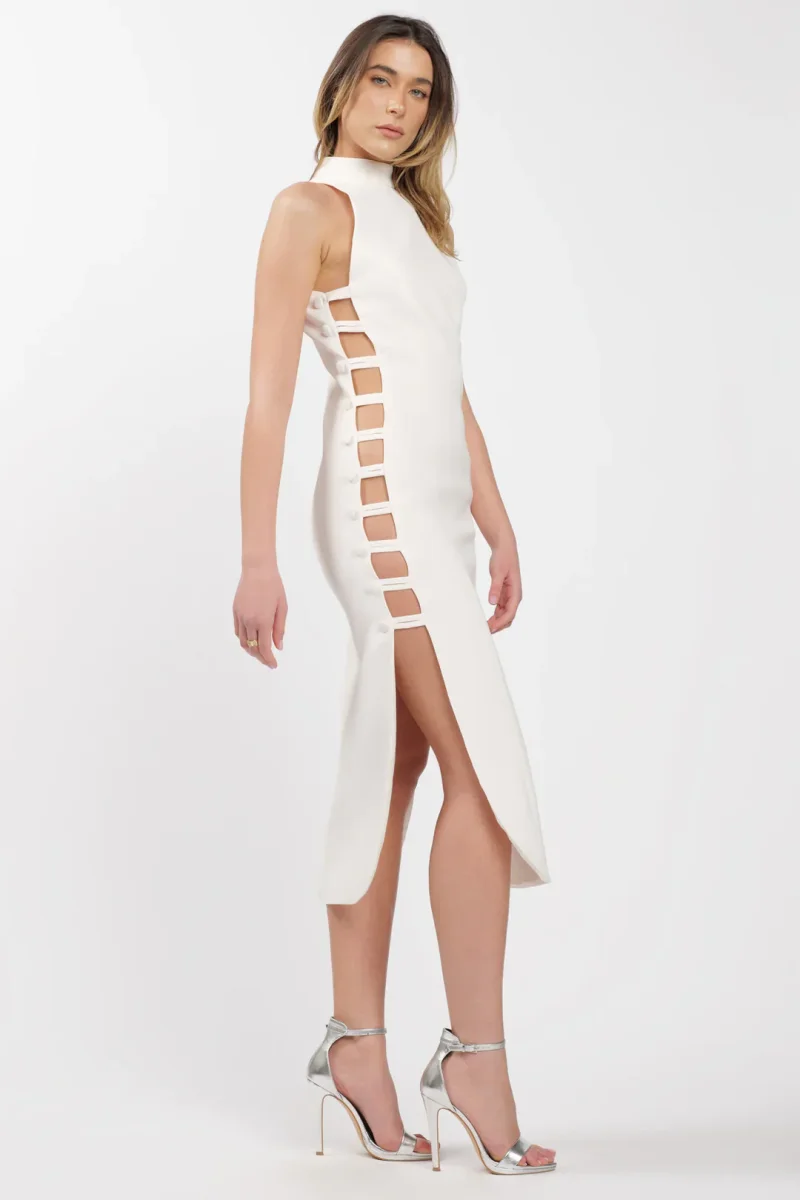 Nuovo ed inimitabile Kyoto Dress modello “Qipao”, dallo stile asiatico perfetto per feste, cerimonie e cocktail party. La particolaritร di questo abito รจ nel design, pieno di fascino orientale, caratterizzato da bottoni laterali che lasciano la figura semi scoperta per un effetto sexy senza perdere mai eleganza!