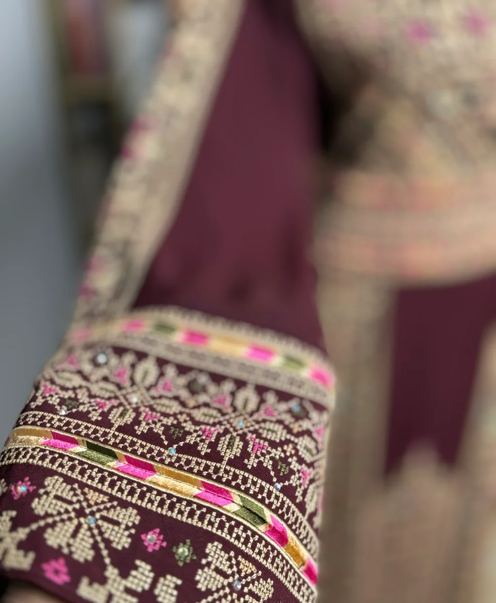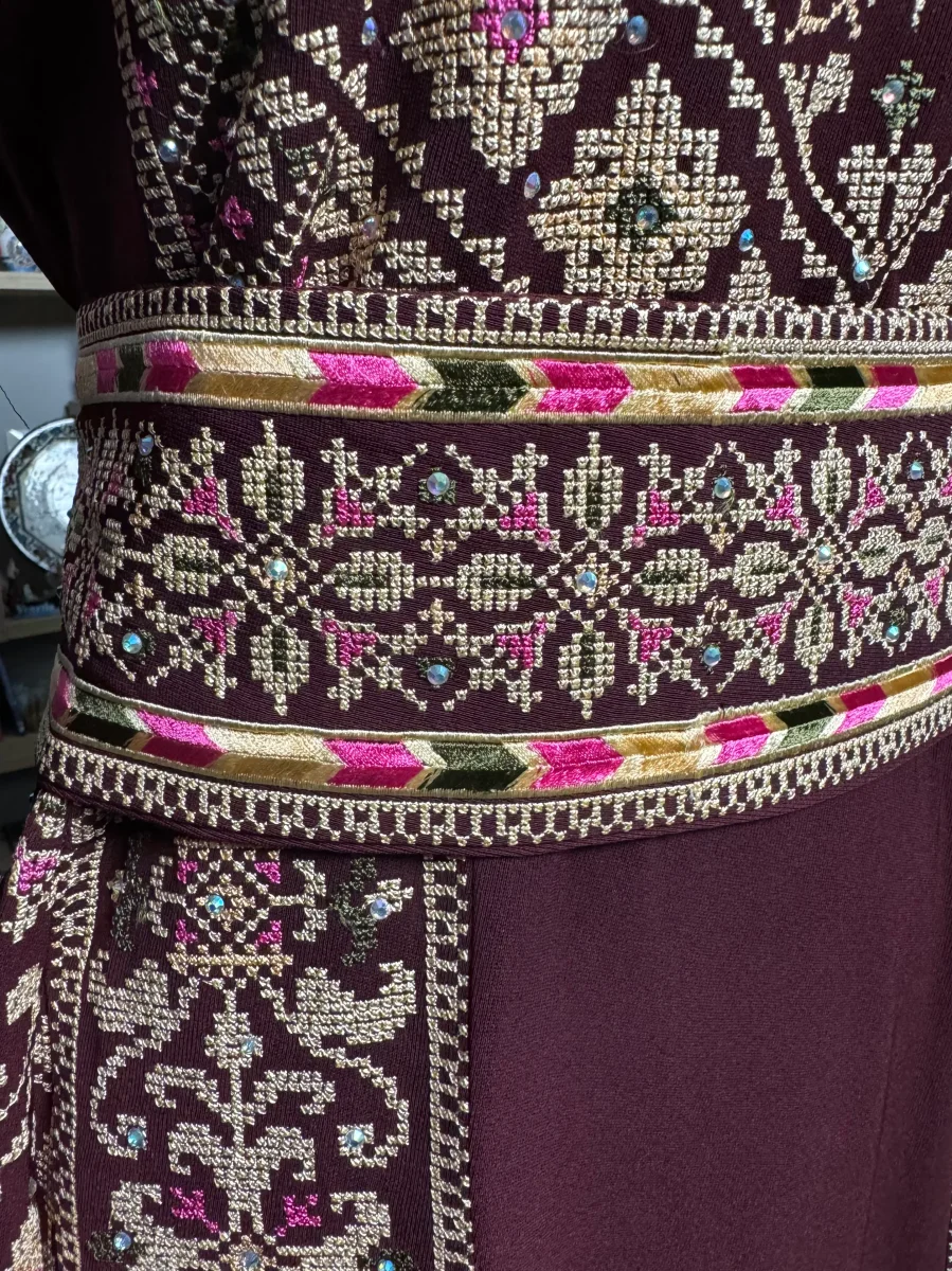 Modello abito โ€œAl Nasrโ€ – Vittoria, in arabo – interamente ricamato avanti e dietro.