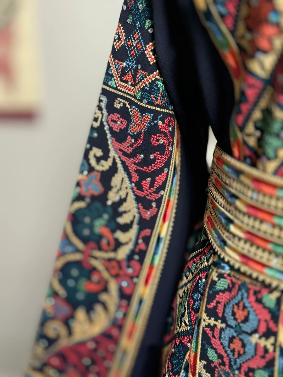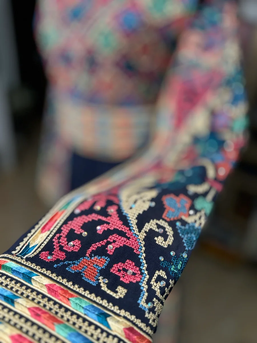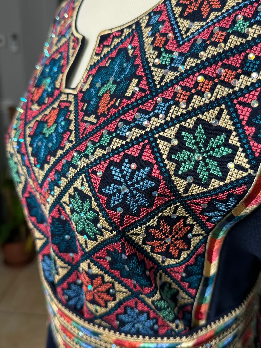Modello abito โHaifaโ, interamente ricamato avanti e dietro.