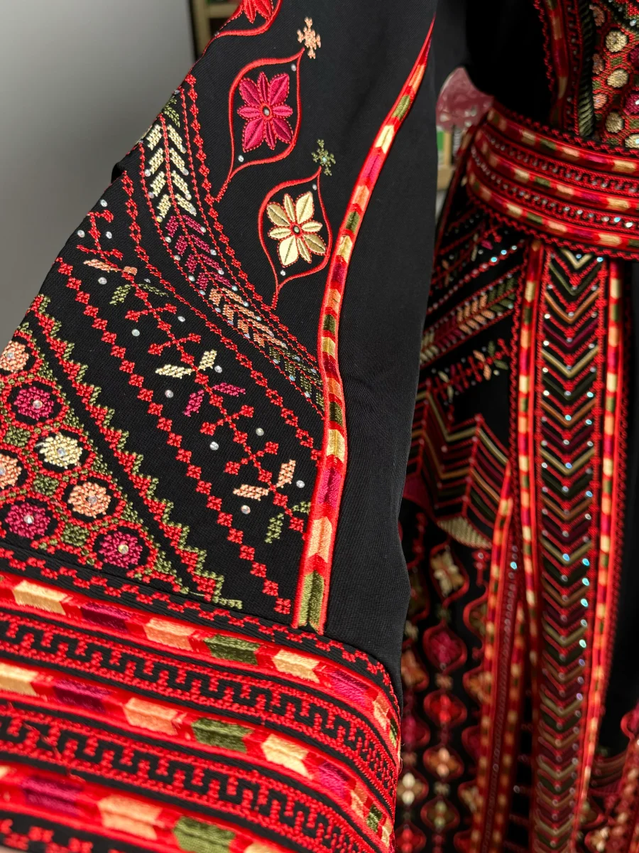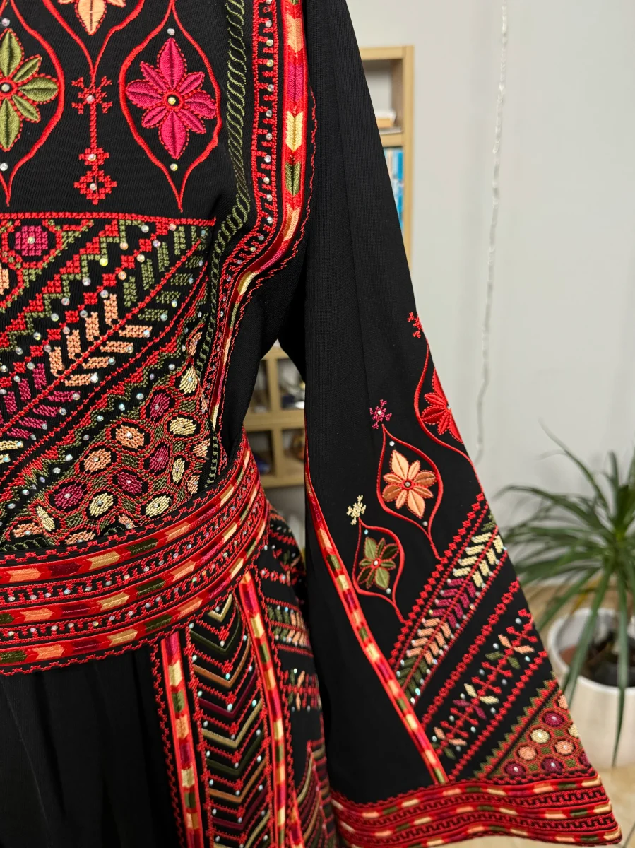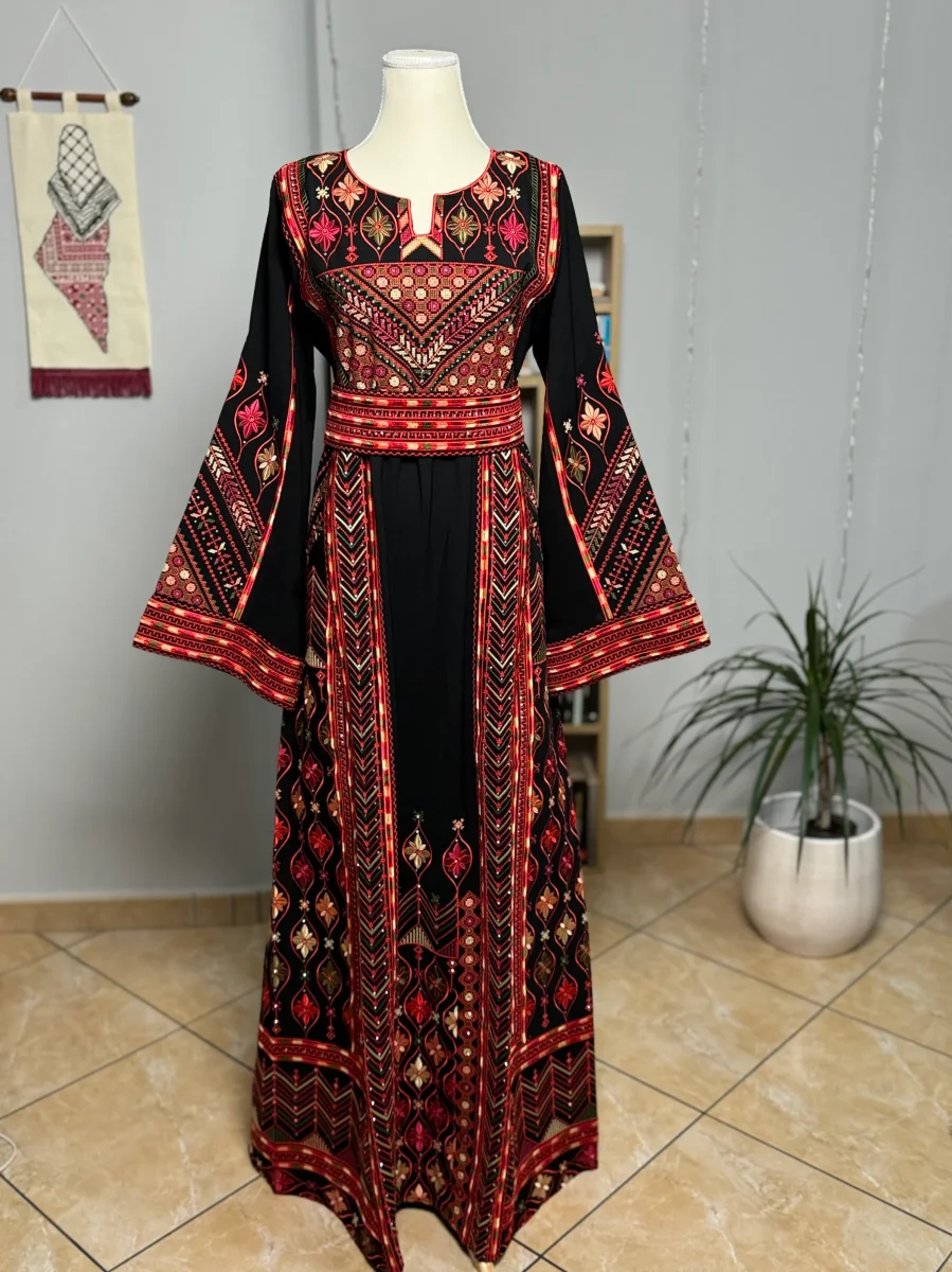 Abito modello โNablusโ, interamente ricamato avanti e dietro.