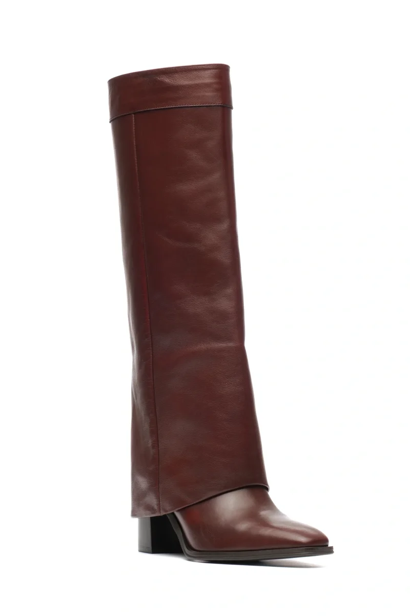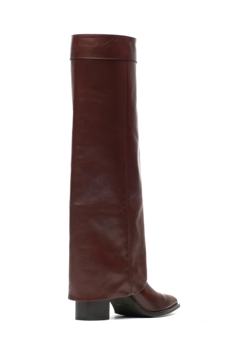 Eleganza senza tempo e carattere deciso si fondono in questo stivale con risvolto interamente in pelle, pensato per chi cerca uno stile grintoso.Questo modello vanta una struttura monoblocco che garantisce comfort e stabilità, mentre il tacco largo in cuoio da 70 mm dona slancio alla silhouette senza rinunciare alla comodità.Il design con risvolto morbido aggiunge un tocco contemporaneo, perfetto da abbinare sia a look casual che a outfit più ricercati. Il pregio dei materiali, unito alla cura dei dettagli, rende questo stivale un must-have per la stagione, ideale per chi ama distinguersi.