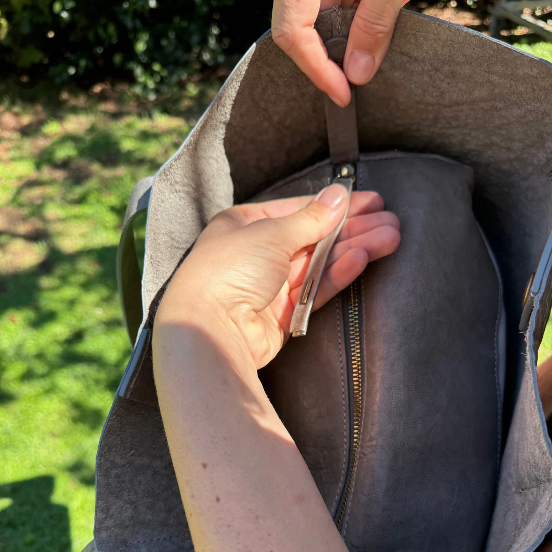 Una Shopper comoda e capiente con una borsa interna con zip che le dona struttura mantenendo la morbidezza.