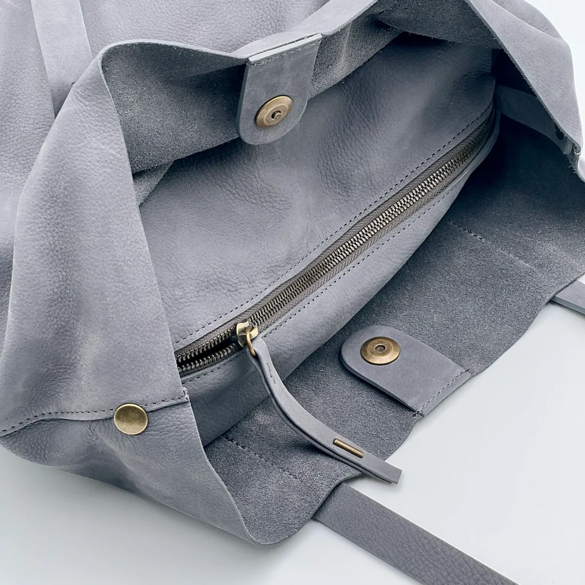 Shopper capiente ed essenziale, realizzata in pelle Long Beach color inky blue. La tonalità blu profondo esalta la linea pulita della borsa, mentre l’inserto interno con zip le dona struttura senza appesantirla. Ideale per un uso quotidiano, dal lavoro al tempo libero.