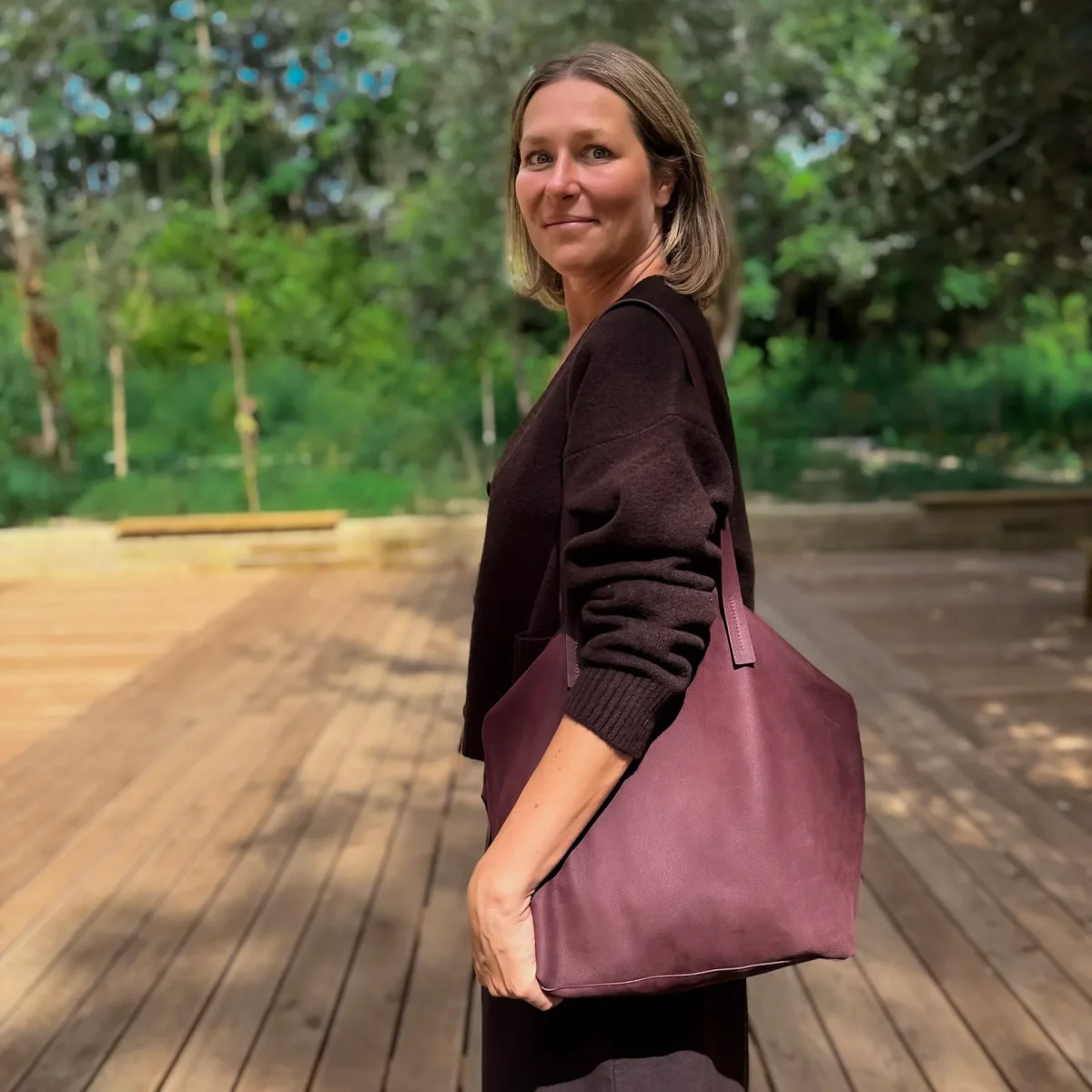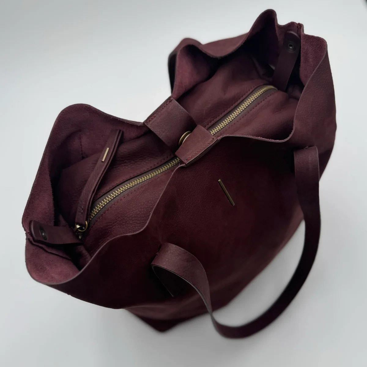Shopper dalla linea morbida ed elastica, realizzata in pelle Long Beach Legrain – con effetto nubuck, leggermente levigata per un tocco vellutato.