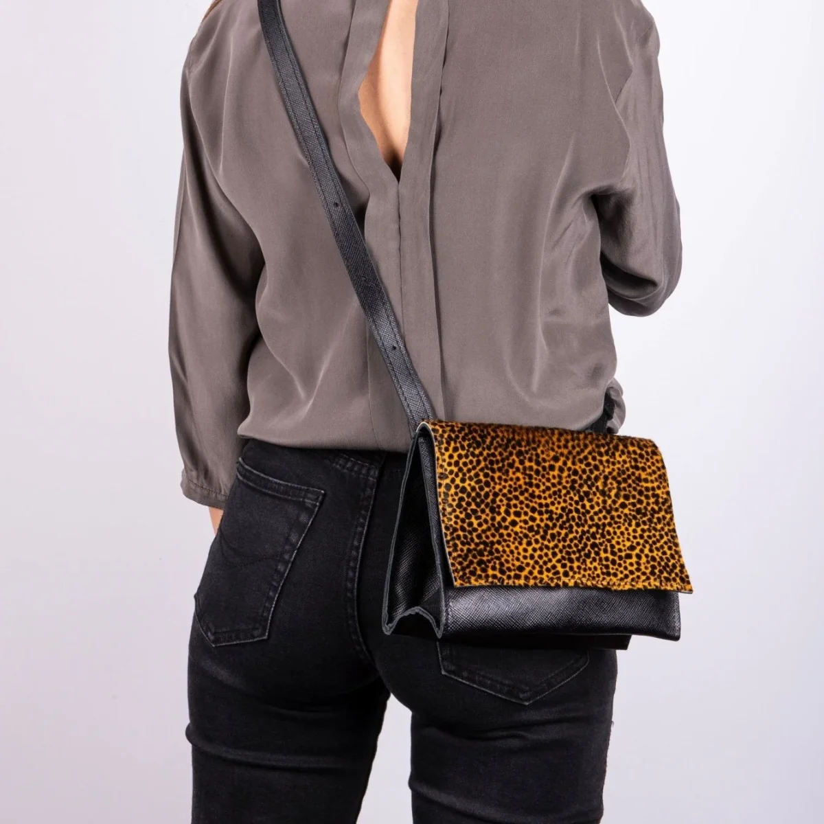 Anna saffiano+cavallino nero/ giallo maculato