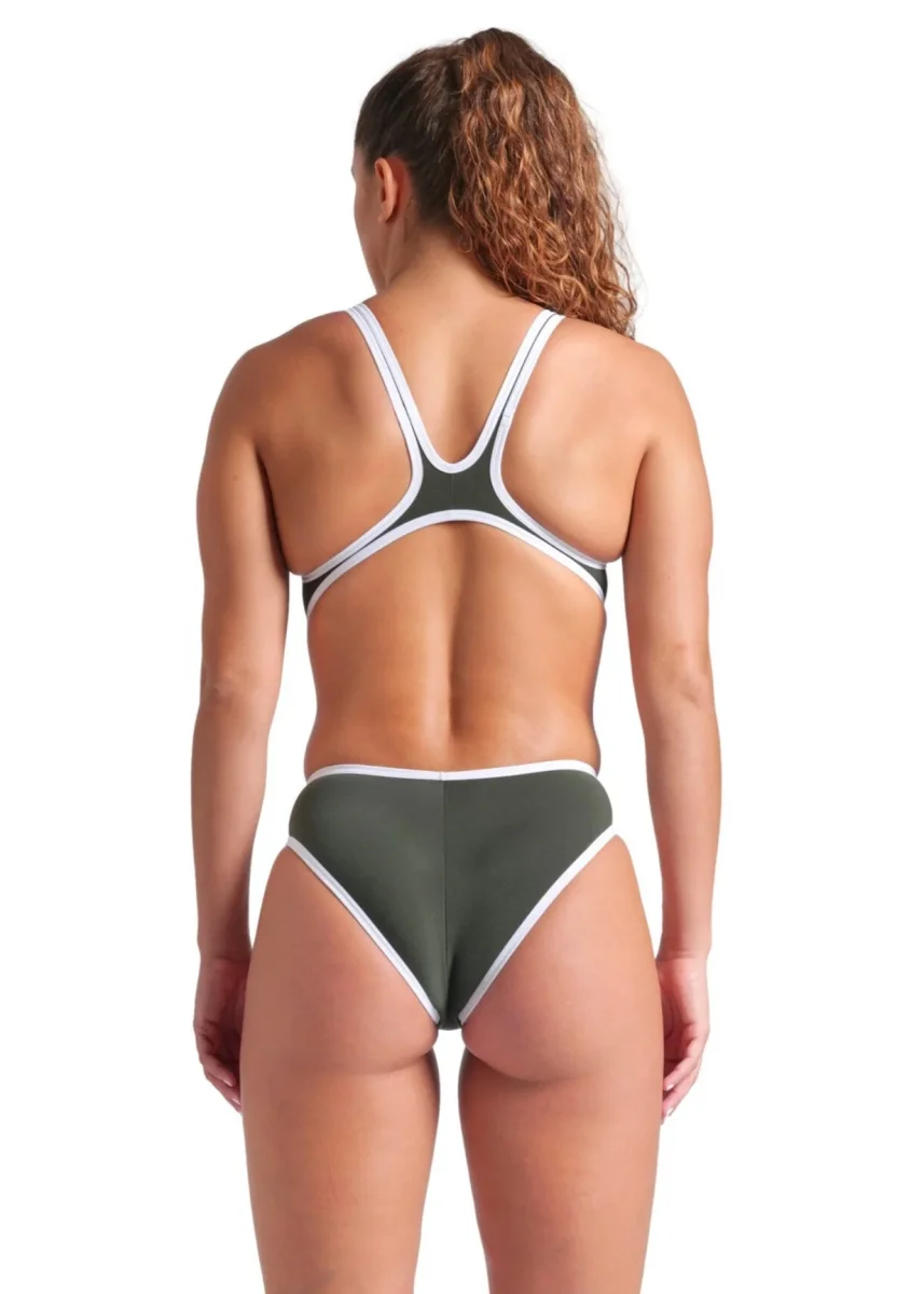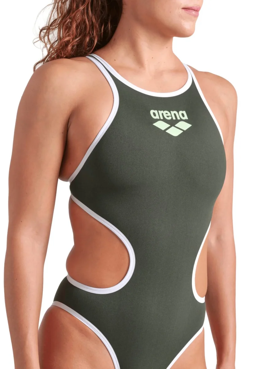 Provate il piacere di una flessibilità totale mentre nuotate. Questo costume da bagno da donna dal modello ultra femminile è contraddistinto dal taglio posteriore Tech One sviluppato da Arena, che rende la scollatura sulla schiena piena di seduzione. Rifinito con una scollatura anteriore alta e una sgambatura media.