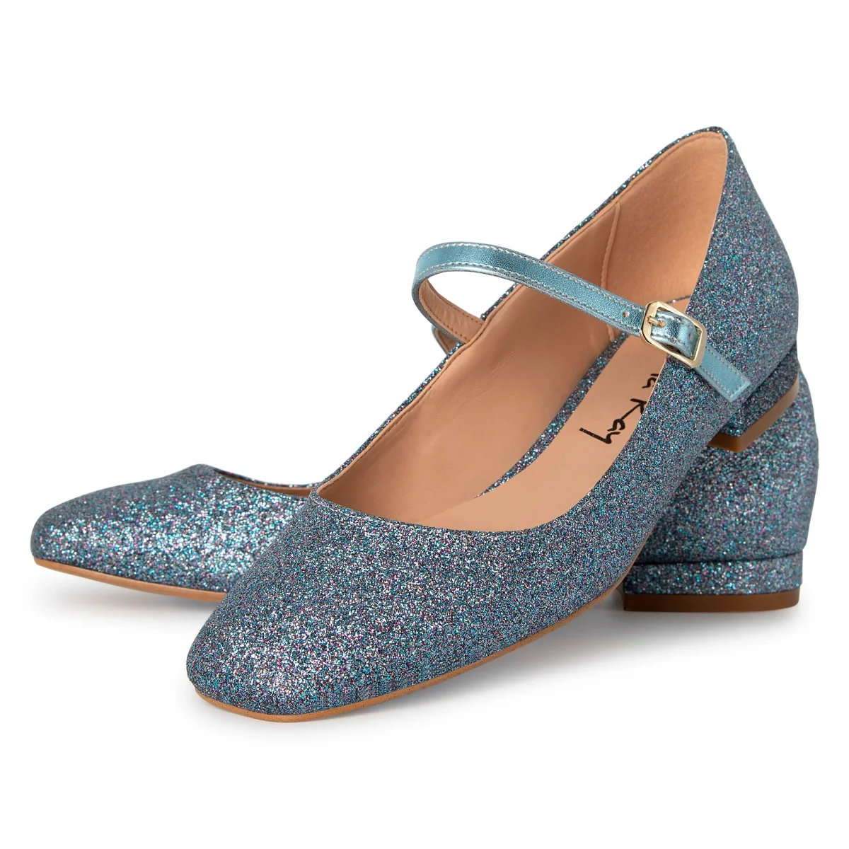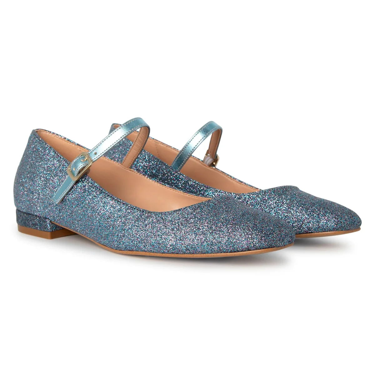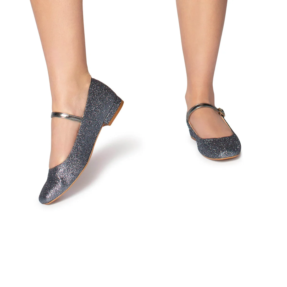 Le ballerine Arlene con il cinturino a tono garantiscono che le scarpe si adattino perfettamente ai piedi . Disponibile nel bellissimo colore Canna Fucile, con riflessi di glitter per un tocco di glamour. Fondo in Tunit, tacco da 2cm