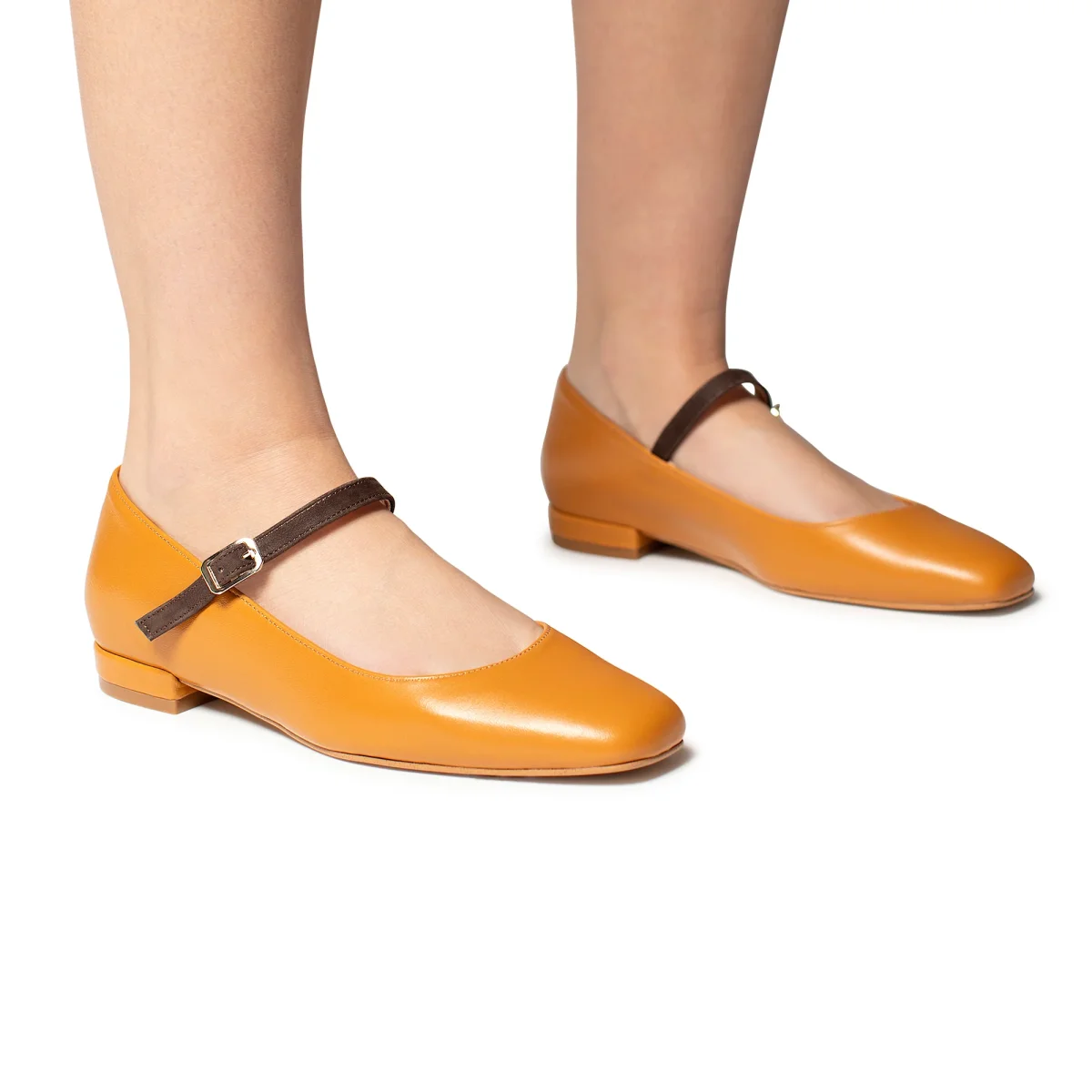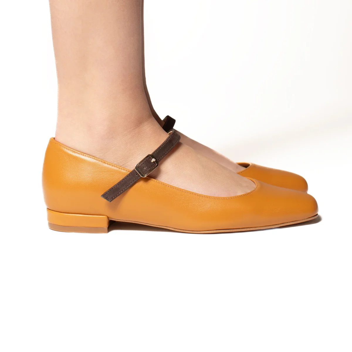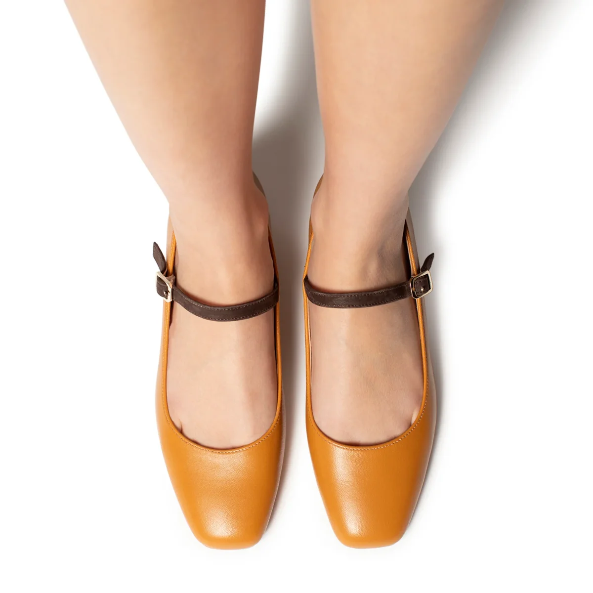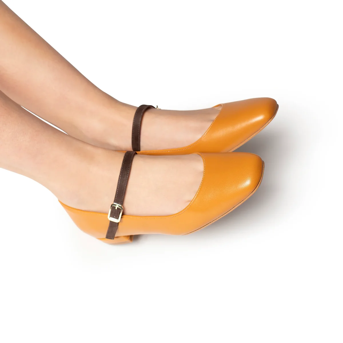 Le ballerine Arlene con il cinturino a contrasto garantiscono che le scarpe si adattino perfettamente ai piedi . Disponibile nel colore cuoio. Fondo in Tunit, tacco da 2cm