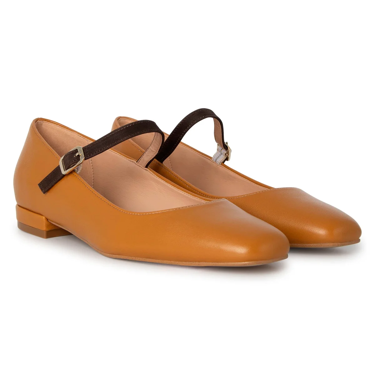 Le ballerine Arlene con il cinturino a contrasto garantiscono che le scarpe si adattino perfettamente ai piedi . Disponibile nel colore cuoio.