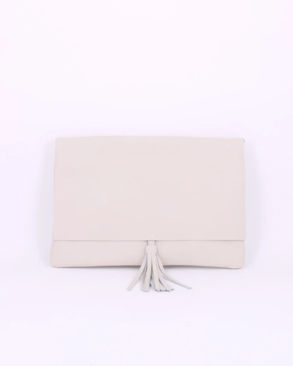 ATENA, pochette in pelle con chiusura a zip. Borsa capiente con tracolla removibile.