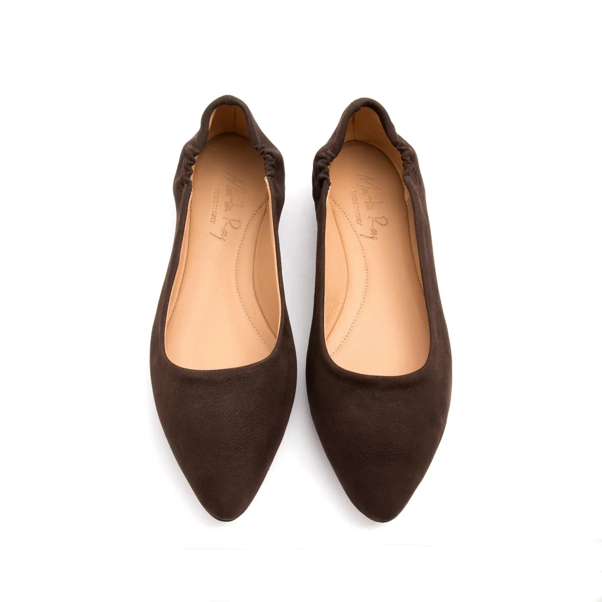 La ballerina a punta Marta Ray con la sua costruzione a sacchetto è garanzia di artigianalità e comodità. Realizzata a mano in morbida pelle questa ballerina calza perfettamente qualsiasi conformazione anche grazie alla piccola arricciatura elastica al tallone. La punta non è accentuata e la pianta è comoda. Il fondo è in cuoio iniettato con gomma antiscivolo.
