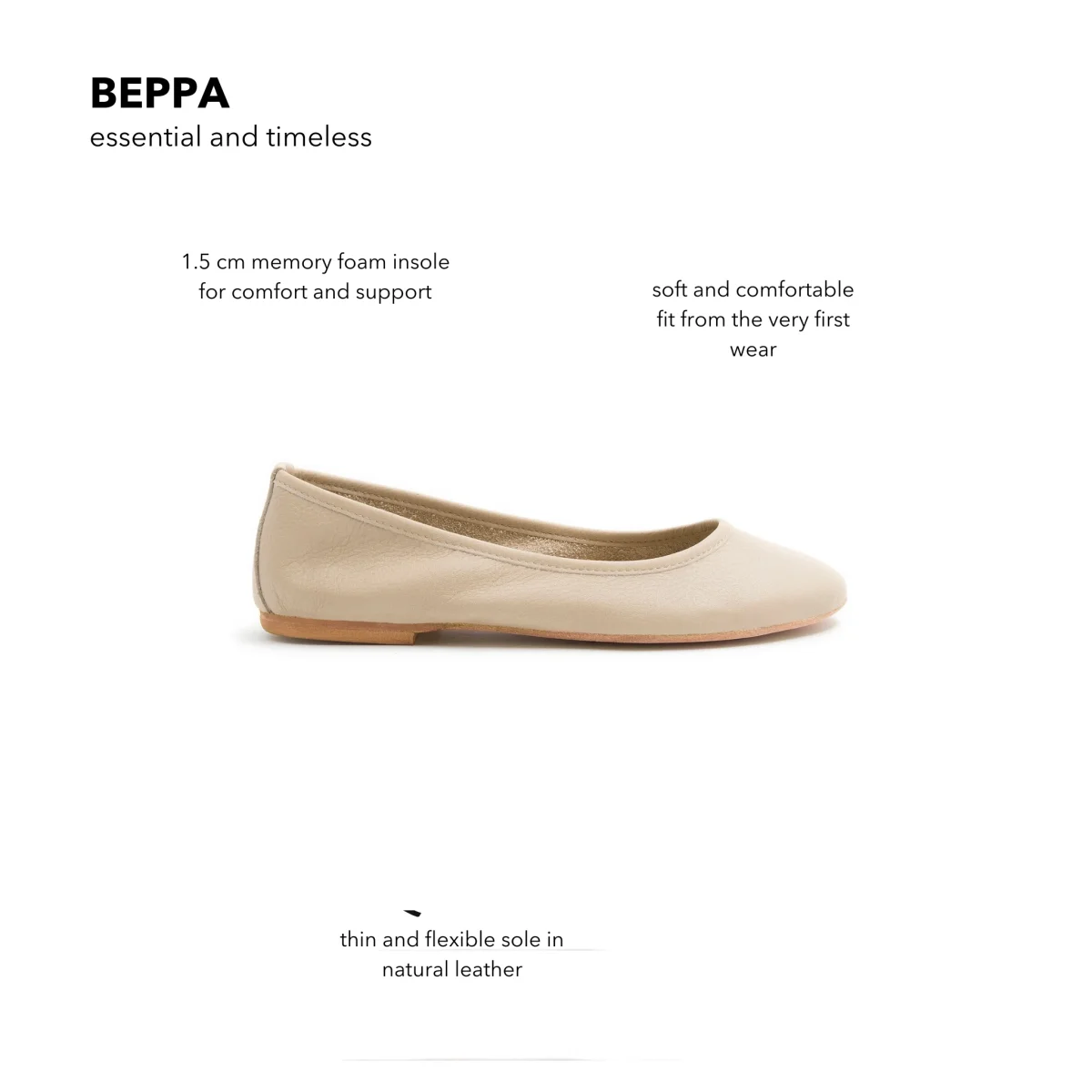 La ballerina è sfoderata e il fondo è in vero cuoio.