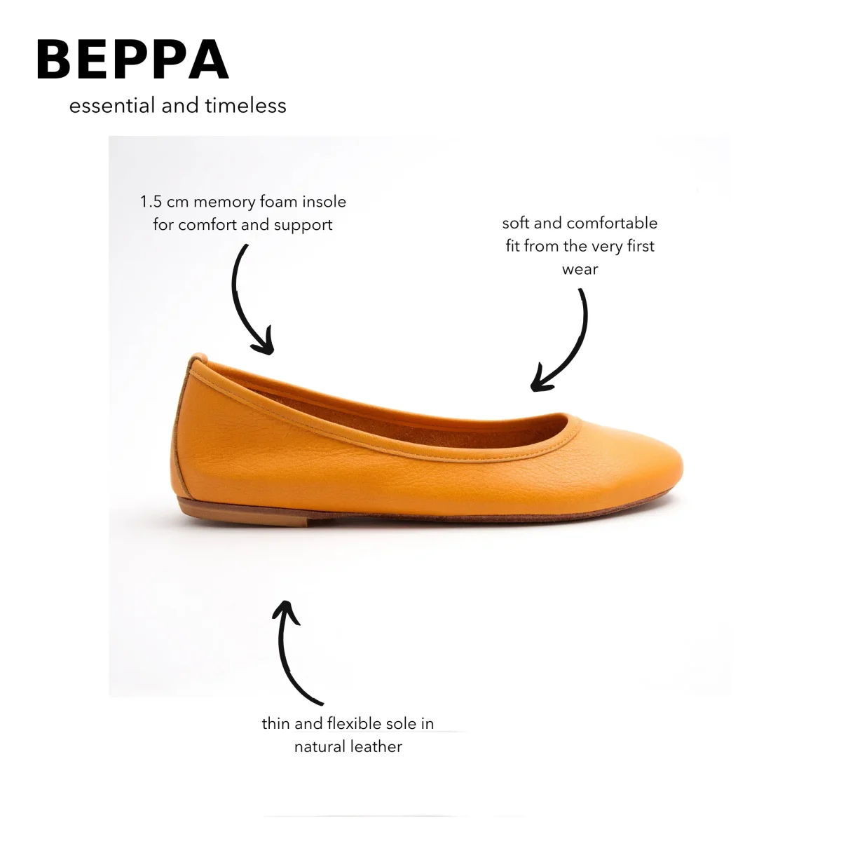 La ballerina è sfoderata e il fondo è in vero cuoio.