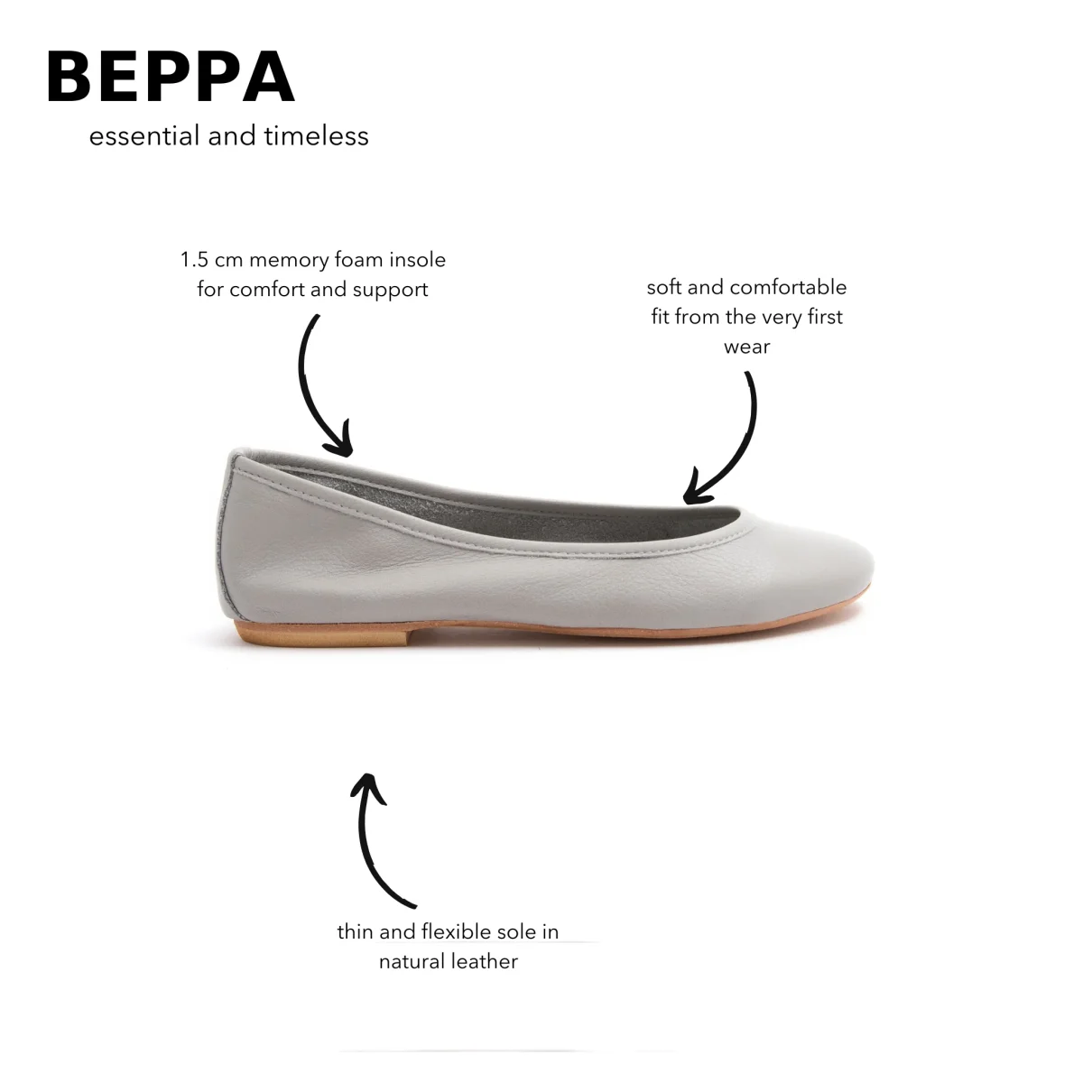 La ballerina è sfoderata e il fondo è in vero cuoio.