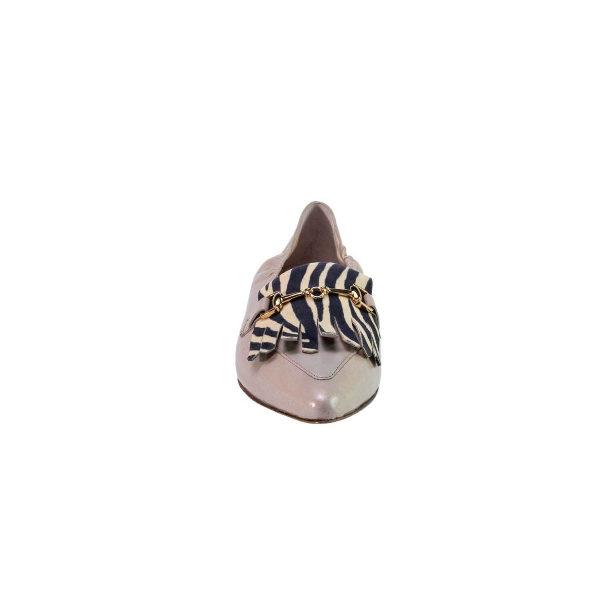 Classica ballerina a punta in pelle morbidissima trattata e colorata a mano con frangia zebrata in camoscio e morsetto, ottimo per ambiti lavorativi e outfit eleganti senza dover rinunciare alla qualità e comfort dell’artigianato italiano. La suola è interamente in cuoio con inserti in gomma antiscivolo.