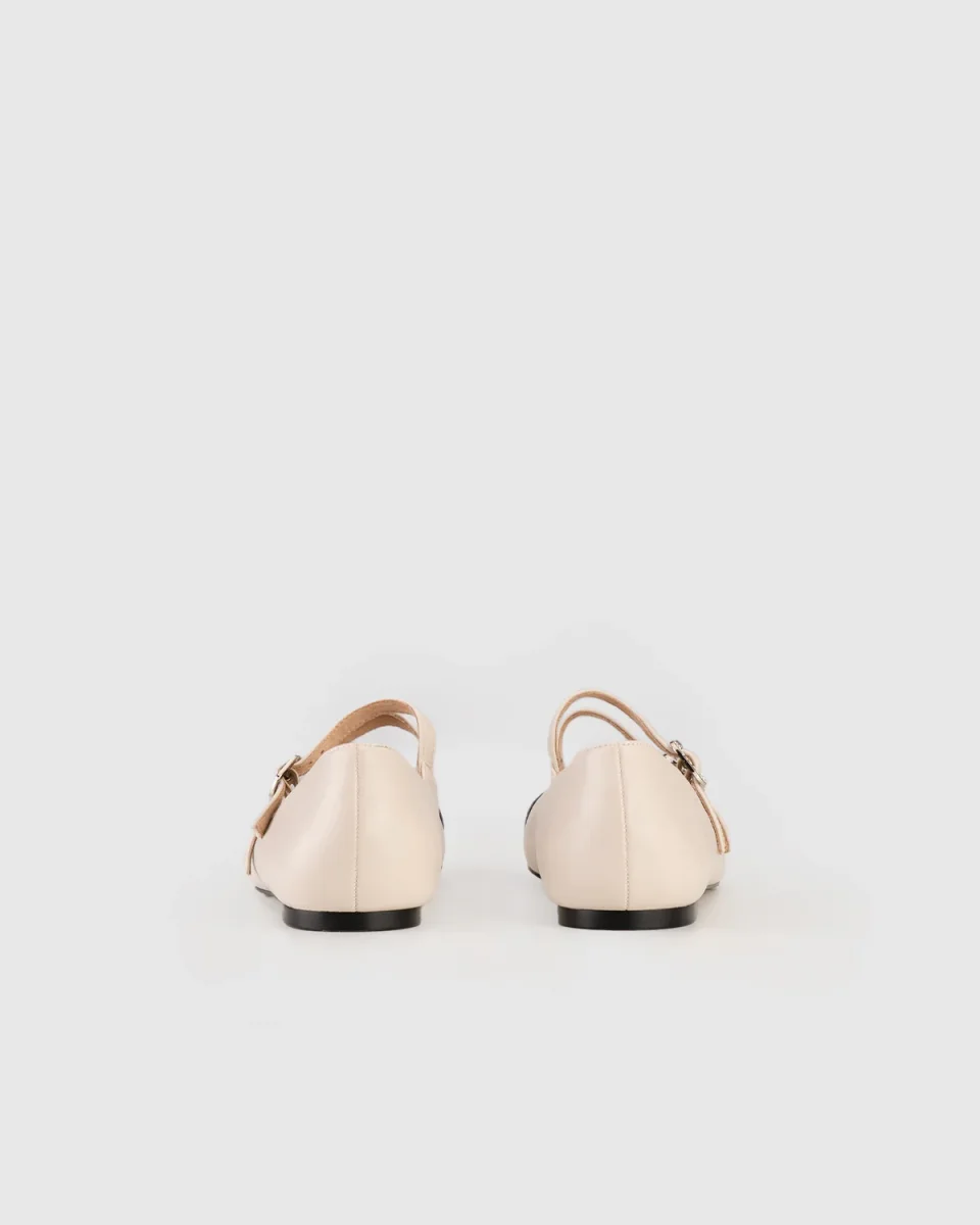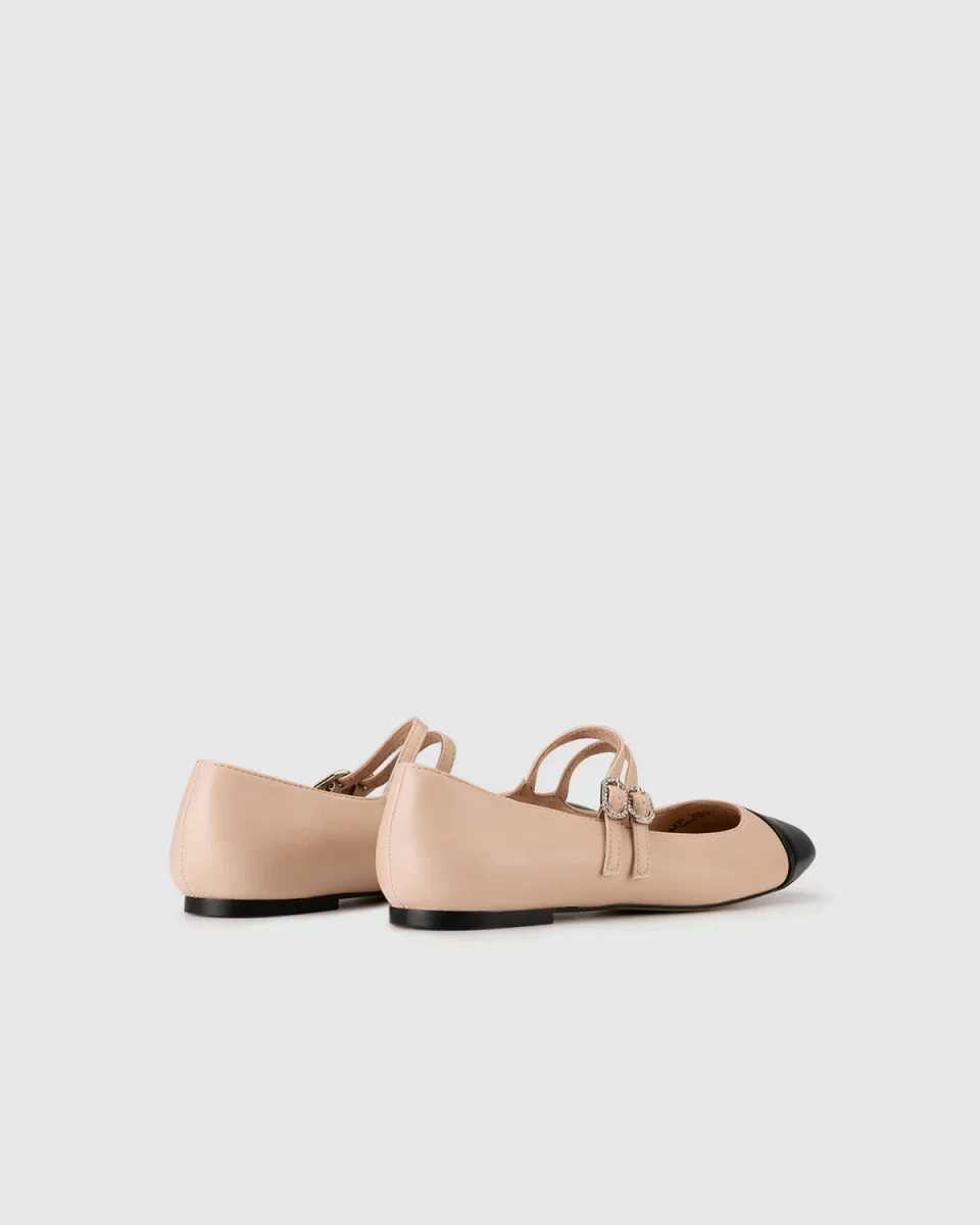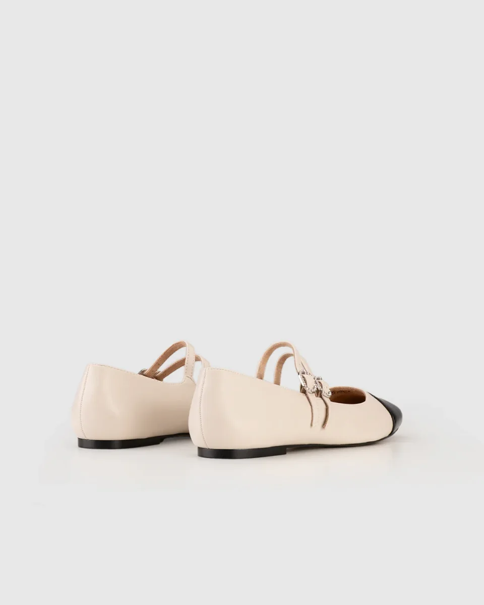 Un’elegante reinterpretazione delle ballerine classiche, queste scarpe uniscono fascino retrò e stile contemporaneo. Le doppie cinturine sottili con fibbie gioiello donano un tocco ricercato e femminile, mentre la punta in contrasto regala un look sofisticato e senza tempo. La linea pulita e la forma delicata le rendono perfette per chi cerca uno stile sobrio ma distintivo. Ideali per accompagnarti con eleganza dal mattino alla sera, senza rinunciare al comfort.
