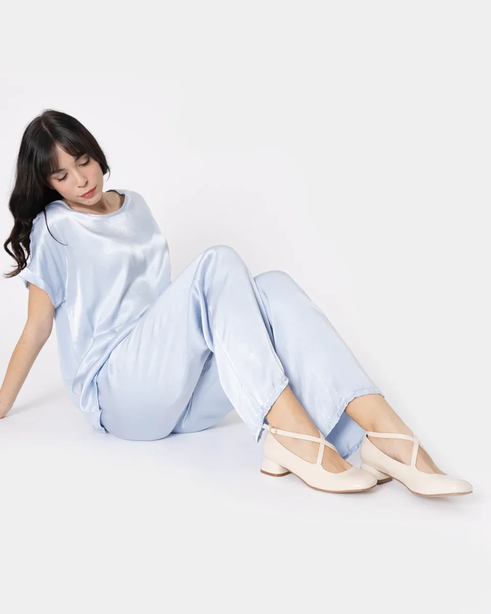 La tomaia in ecopelle lucida cattura la luce con discrezione, rendendo queste scarpe ideali sia per il giorno che per la sera. Il tacco basso a rocchetto garantisce comfort per tutta la giornata senza rinunciare allo stile, rendendole perfette per chi cerca eleganza e praticità.