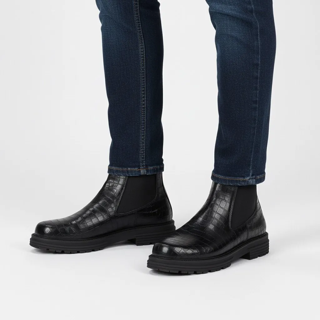 Questi stivaletti Beatles sono realizzati in pregiata pelle di vitello con stampa coccodrillo tinta a mano con le sfumature che ne esaltano il carattere artigianale.