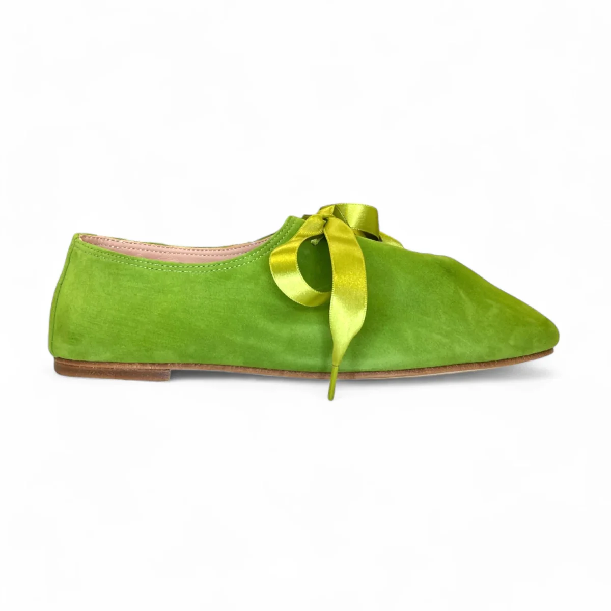 La nuova stringatina morbida con punta tonda e nastro regolatore in raso.