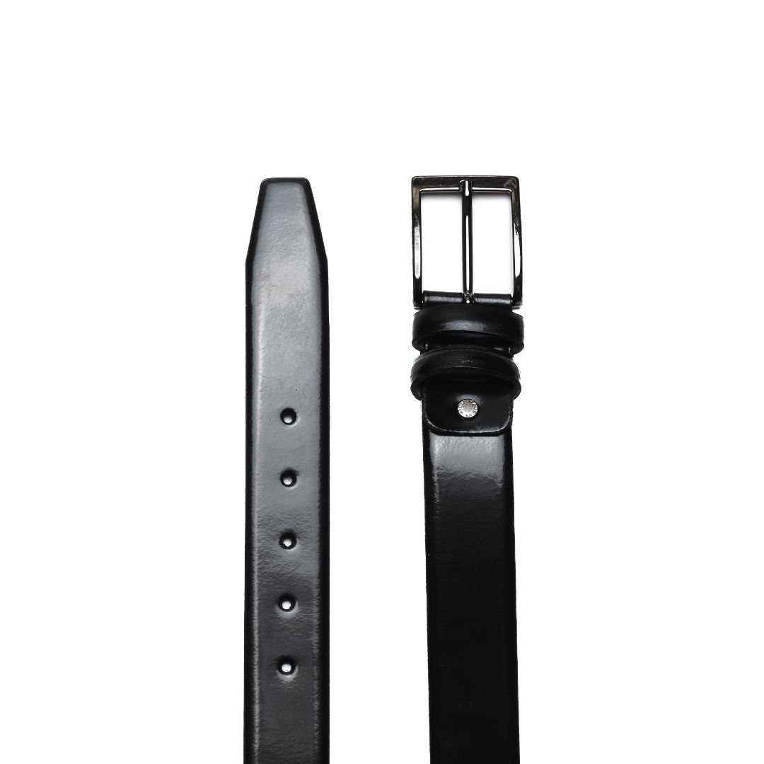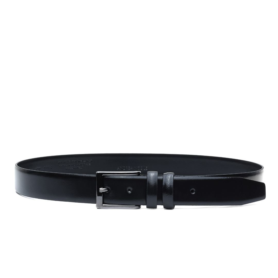Cintura artigianale Made in Italy con fibbia in acciaio imbrunito. Realizzata in pelle di vitello tinta nel colore nero. La finitura “a specchio” della pelle che rende queste scarpe uniche è ottenuta con un lungo processo di spazzolatura effettuato da artigiani esperti. Interno con logo inciso. Larghezza: 3.5 cm Questa cintura realizzata a mano unisce storia, eleganza, comfort e robustezza tipici dei prodotti Made in Italy con lo stile unico di Andrea Nobile.