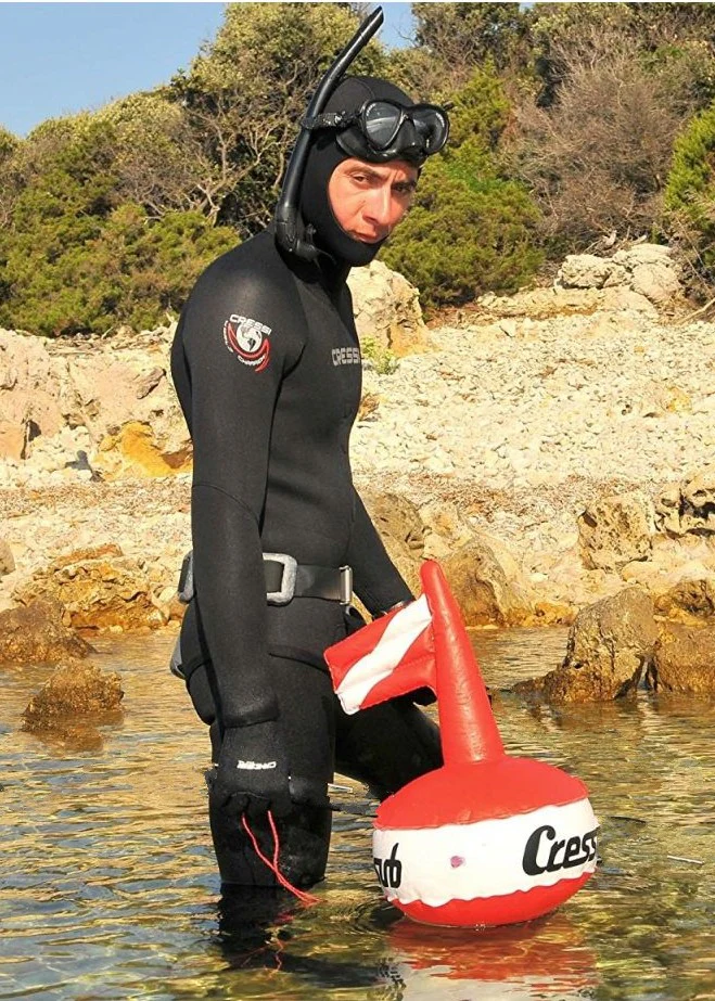 Boa di forma sferica, leggermente appiattita per offrire una minore resistenza al vento e dotata di bandiera gonfiabile incorporata. Realizzata in pvc, reca sul lato inferiore un robusto punto d’aggancio per il sagolone.