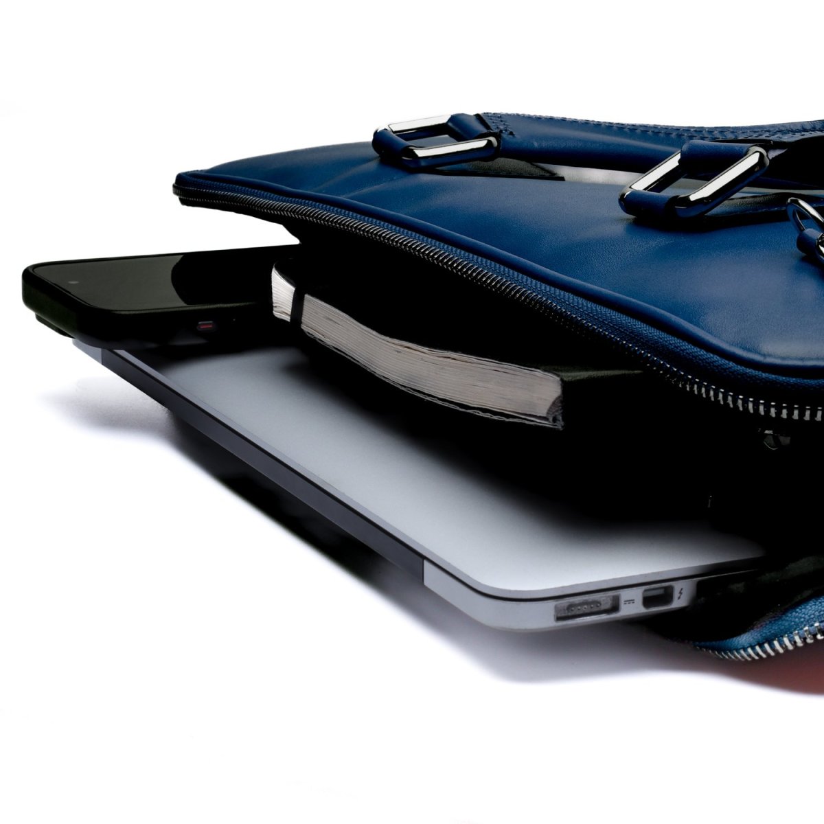 Borsa da lavoro Made in Italy realizzata in vera pelle crust tinta a mano nel colore blu, perfetta per chi cerca una sintesi tra artigianalità e funzionalità. La superficie liscia e naturale, leggermente sfumata, esalta il pregio della pelle conciata al vegetale, conferendo al pezzo un’eleganza discreta ma ricca di carattere.