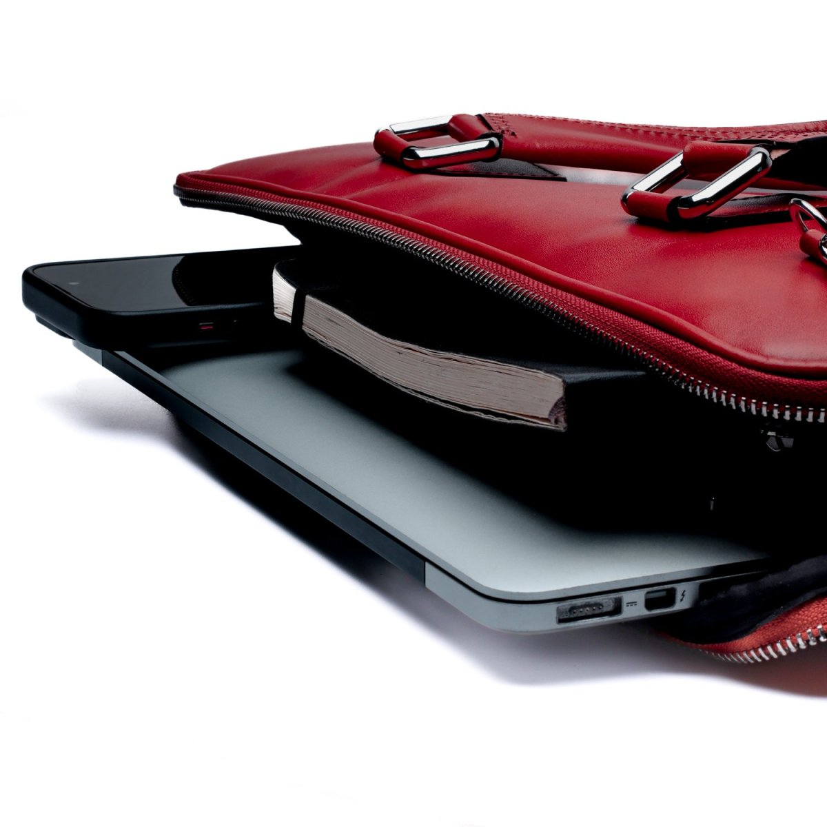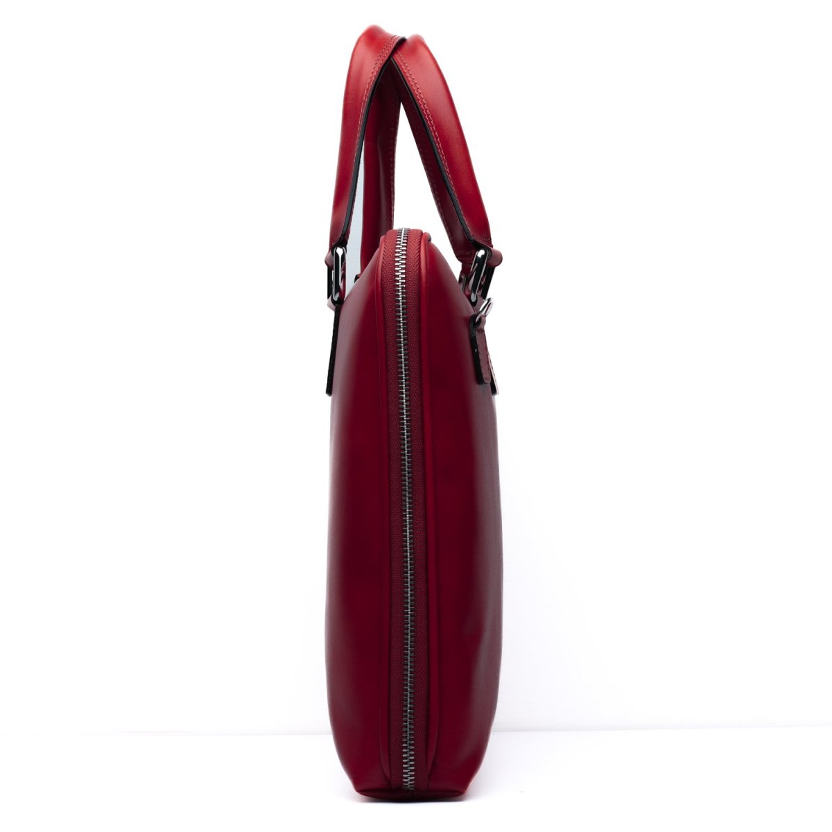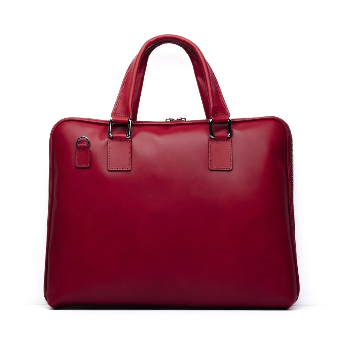 Borsa da lavoro Made in Italy realizzata in vera pelle crust tinta a mano nel colore rosso, perfetta per chi cerca una sintesi tra artigianalità e funzionalità. La superficie liscia e naturale, leggermente sfumata, esalta il pregio della pelle conciata al vegetale, conferendo al pezzo un’eleganza discreta ma ricca di carattere. Il design è essenziale e contemporaneo: profilo sottile, doppio manico strutturato e tracolla removibile in tessuto tecnico con finiture in pelle. L’interno è pensato per contenere laptop fino a 15”, documenti e accessori personali, grazie a uno scomparto principale e tasche dedicate. Le zip in metallo cromato completano il…