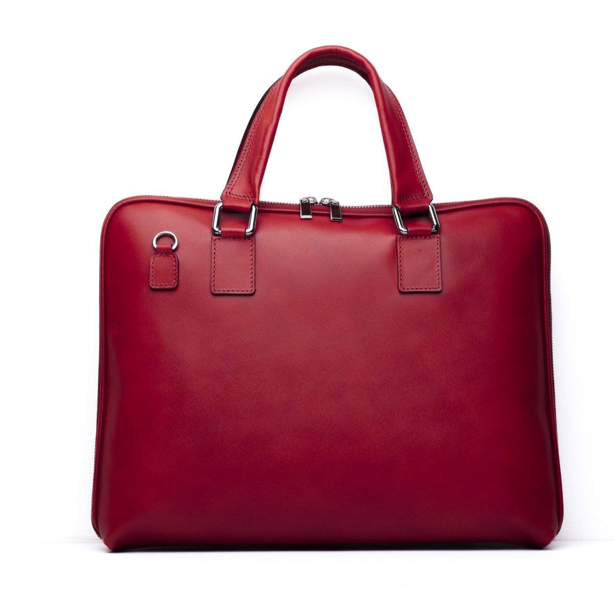 Borsa da lavoro Made in Italy realizzata in vera pelle crust tinta a mano nel colore rosso, perfetta per chi cerca una sintesi tra artigianalità e funzionalità. La superficie liscia e naturale, leggermente sfumata, esalta il pregio della pelle conciata al vegetale, conferendo al pezzo un’eleganza discreta ma ricca di carattere.