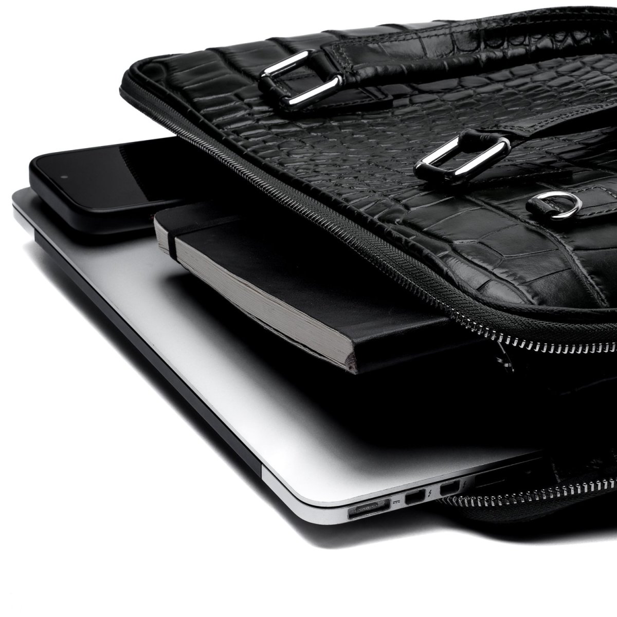 Borsa professionale Made in Italy in pelle con stampa coccodrillo, un accessorio dal forte impatto visivo pensato per chi ama distinguersi. La lavorazione artigianale italiana si esprime nella qualità del pellame e nella precisione delle cuciture, mentre la texture cocco aggiunge una nota decisa e raffinata.