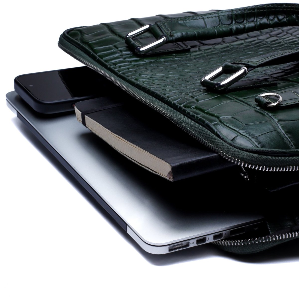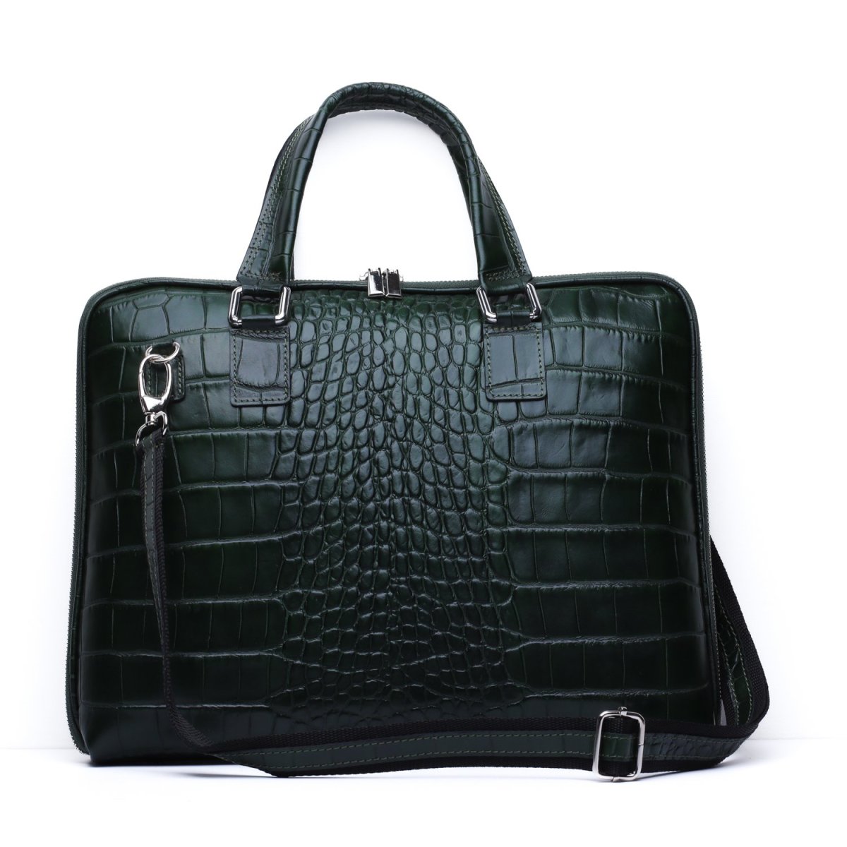 Borsa professionale Made in Italy in pelle con stampa coccodrillo, un accessorio dal forte impatto visivo pensato per chi ama distinguersi. La lavorazione artigianale italiana si esprime nella qualità del pellame e nella precisione delle cuciture, mentre la texture cocco aggiunge una nota decisa e raffinata.