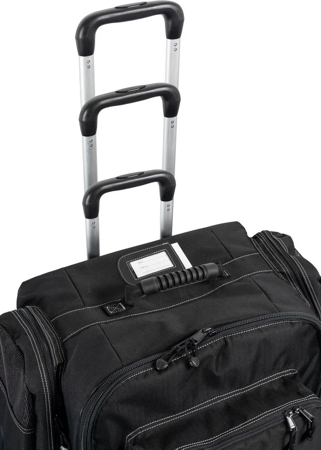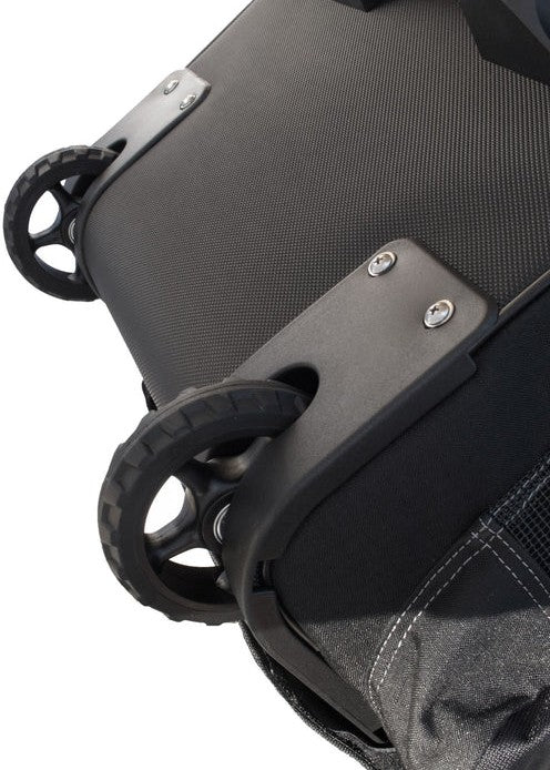 Sono inoltre presenti due cinghiaggi imbottiti e regolabili, per il trasporto a spalla, che possono essere riposti in apposite tasche, per la spedizione dello zaino. Le ruote sono di grande diametro e smontabili, per una comoda sostituzione in caso di rottura. La maniglia di traino è telescopica, rinforzata e a scomparsa. Vi sono due maniglie per il sollevamento: una superiore, rinforzata e una inferiore, con velcro di bloccaggio. La parte dorsale della borsa alloggia delle barre d’irrigidimento, per mantenere Moby 5 in posizione verticale. Tutte le cerniere sono robustissime YKK.