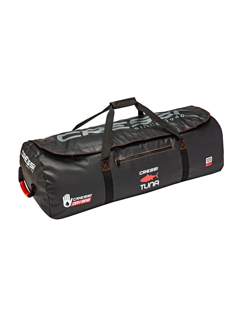 La borsa Tuna è dotata di fondo rigido, grazie alla struttura che sorregge le ruote gommate e anti rottura. È pensata per trasportare più comodamente l’attrezzatura subacquea. Il materiale è dry idrorepellente, anche se non a tenuta stagna. Tutti i componenti metallici sono in acciaio inossidabile anti ruggine.
