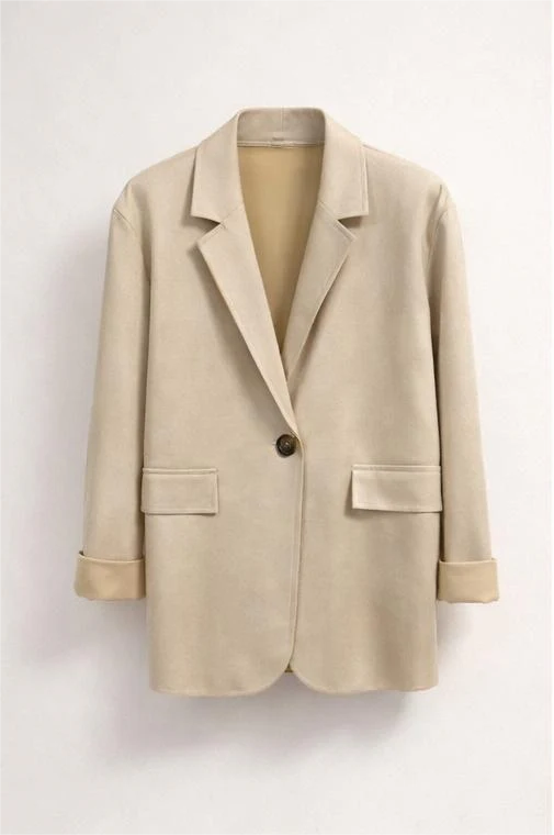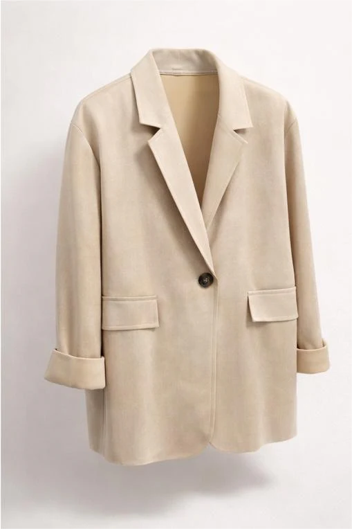 Raffinato, versatile e perfetto per ogni occasione. Questo blazer donna monopetto dal taglio morbido è pensato per completare con eleganza sia look casual che outfit più sofisticati. Il design essenziale con revers classico e chiusura a bottone singolo dona una silhouette pulita e contemporanea.