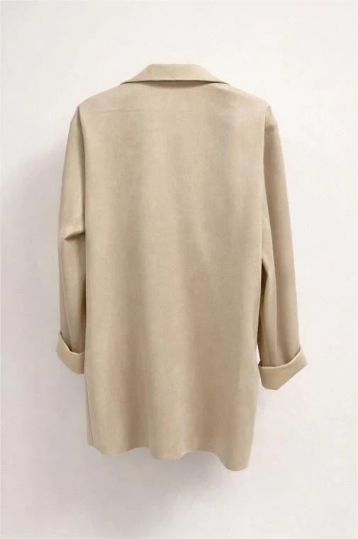 Realizzato in tessuto morbido e leggero, è ideale per accompagnare le mezze stagioni e per creare look eleganti ma confortevoli. Le tasche frontali con pattina e la vestibilità leggermente oversize aggiungono un tocco moderno e disinvolto.