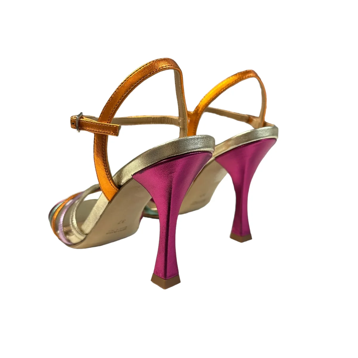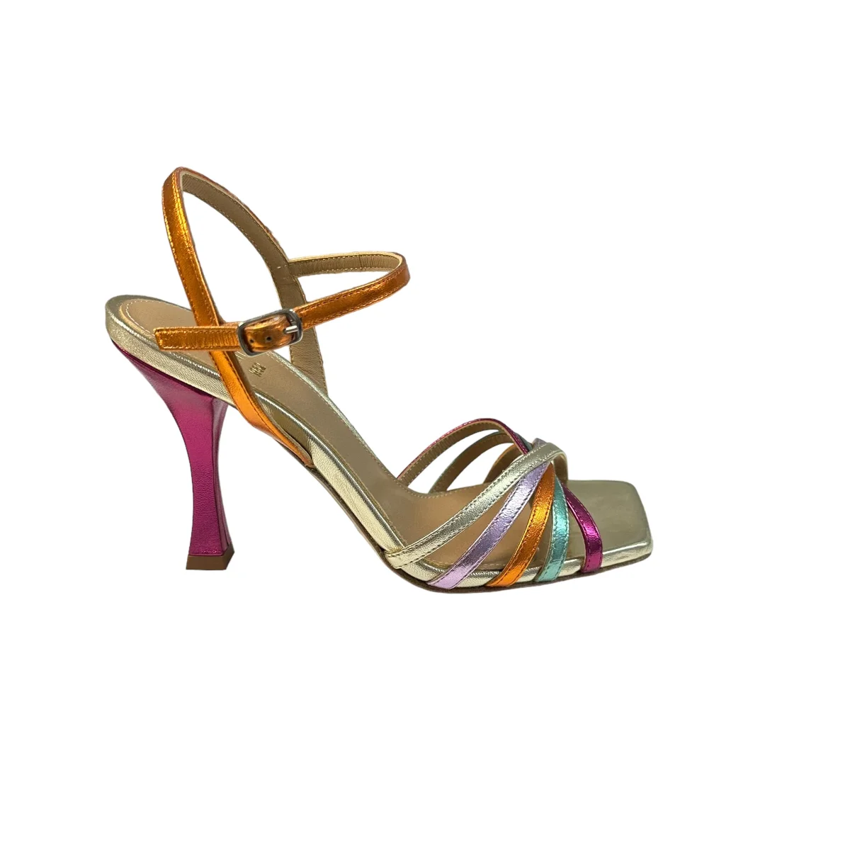 Sandalo in pelle laminata multicolor, con braccialetto, tacco 10cm