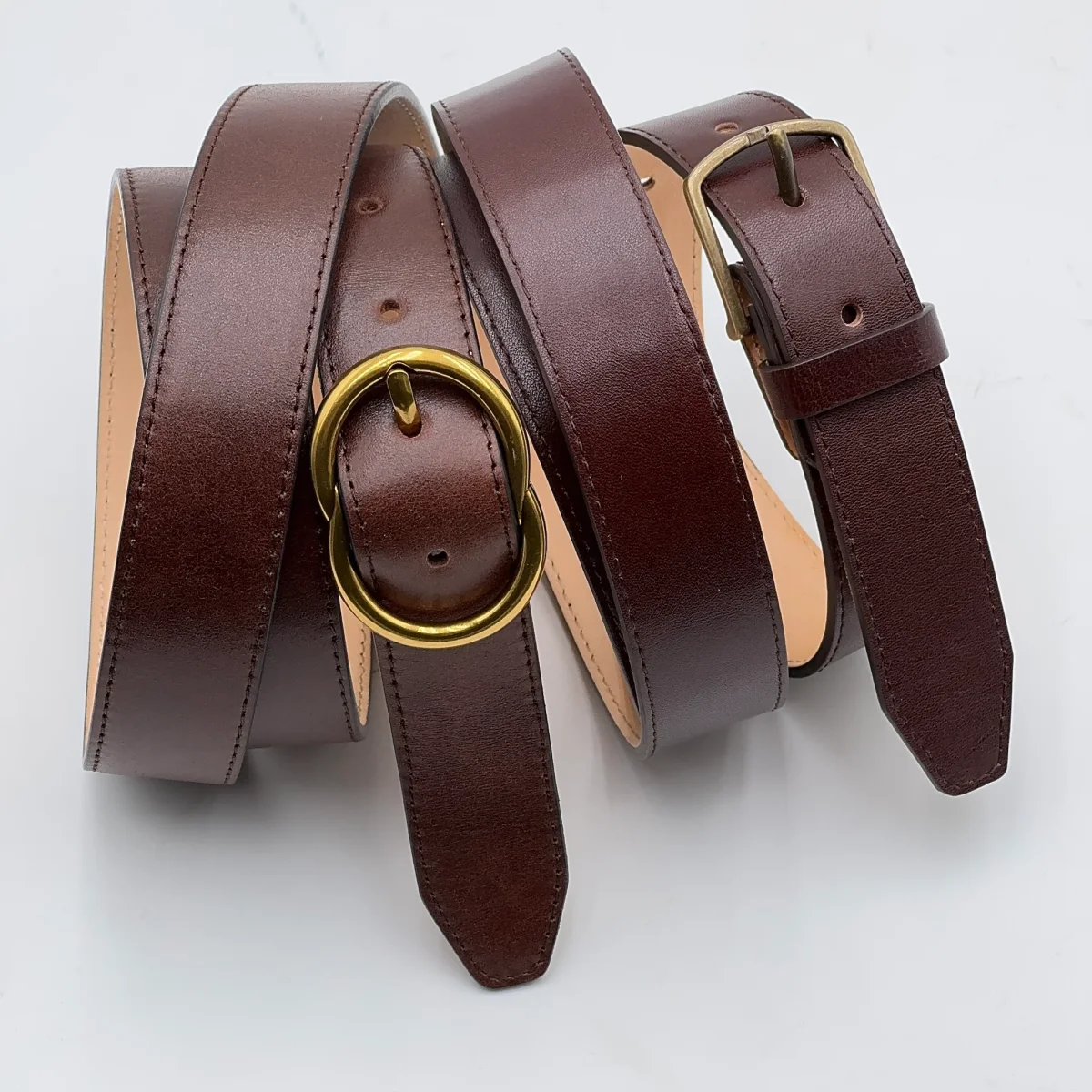 Cintura foderata in cuoio, color marrone, con il bordo tinto.