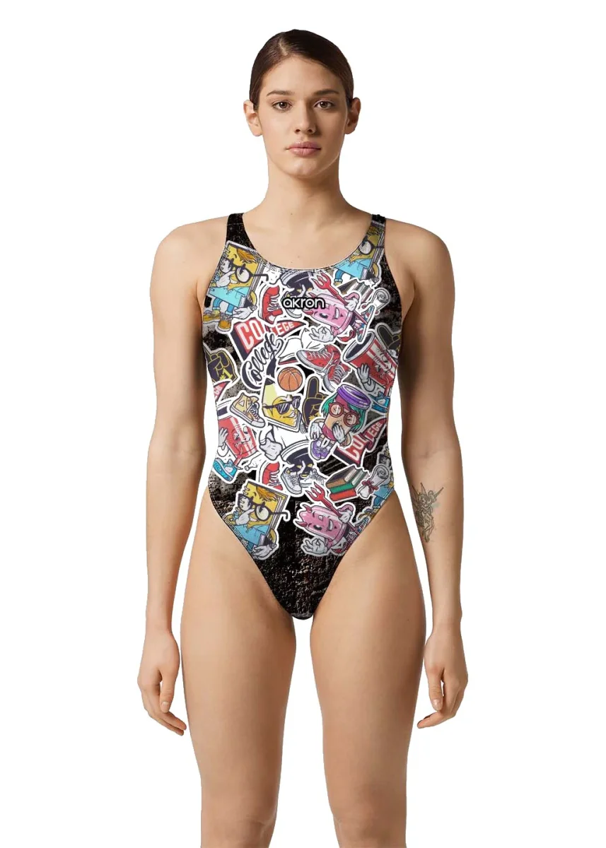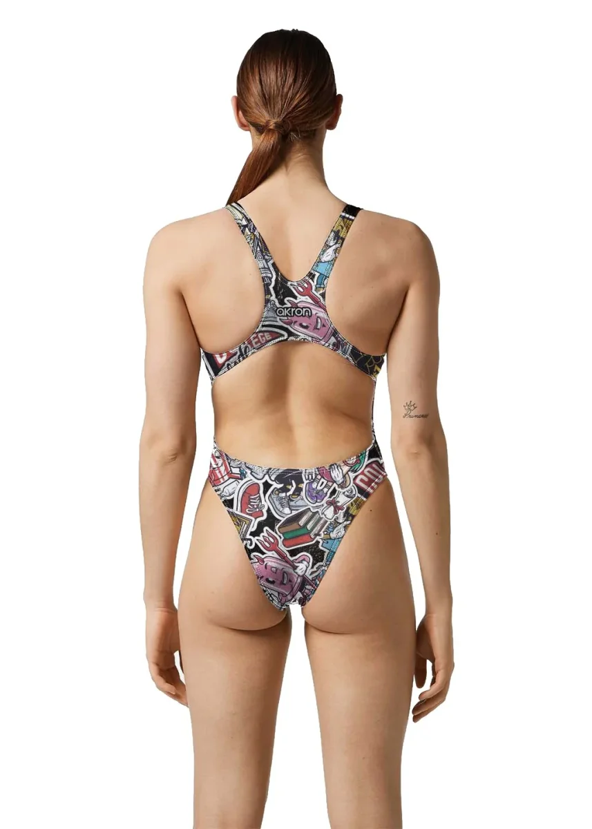 Costume da allenamento Akron Donna, coloratissimo per rendere speciale la tua nuotata. I costumi di Akron Italia, accompagnano la tua voglia di nuoto ogni giorno, con colori sgargianti ed allegri.