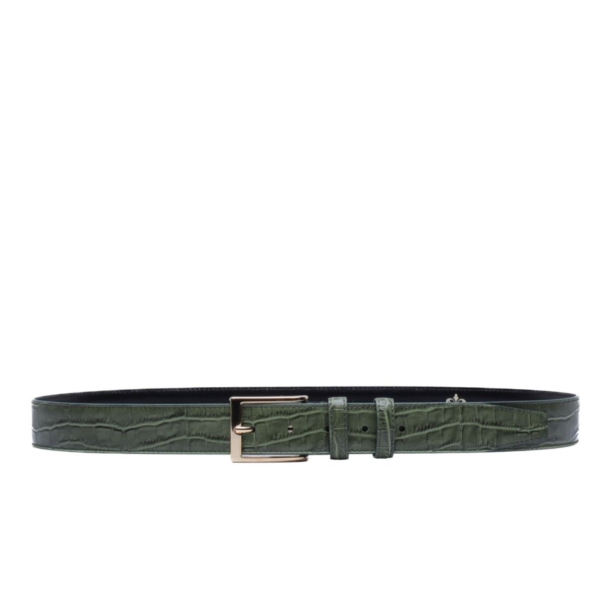 Cintura artigianale in pelle stampa coccodrillo color Verde, Made in Italy