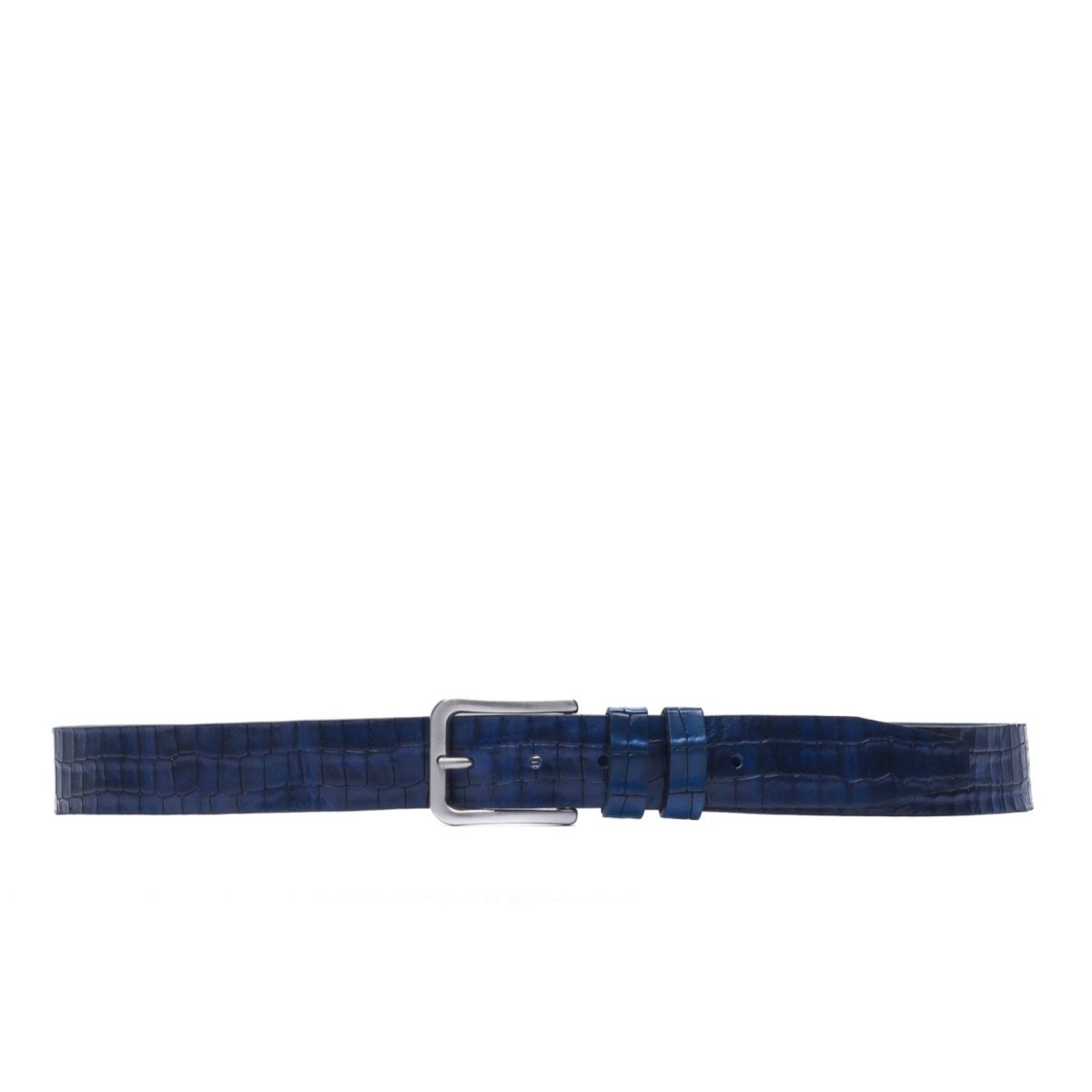 Crocodile Print Leather Belt – Blu