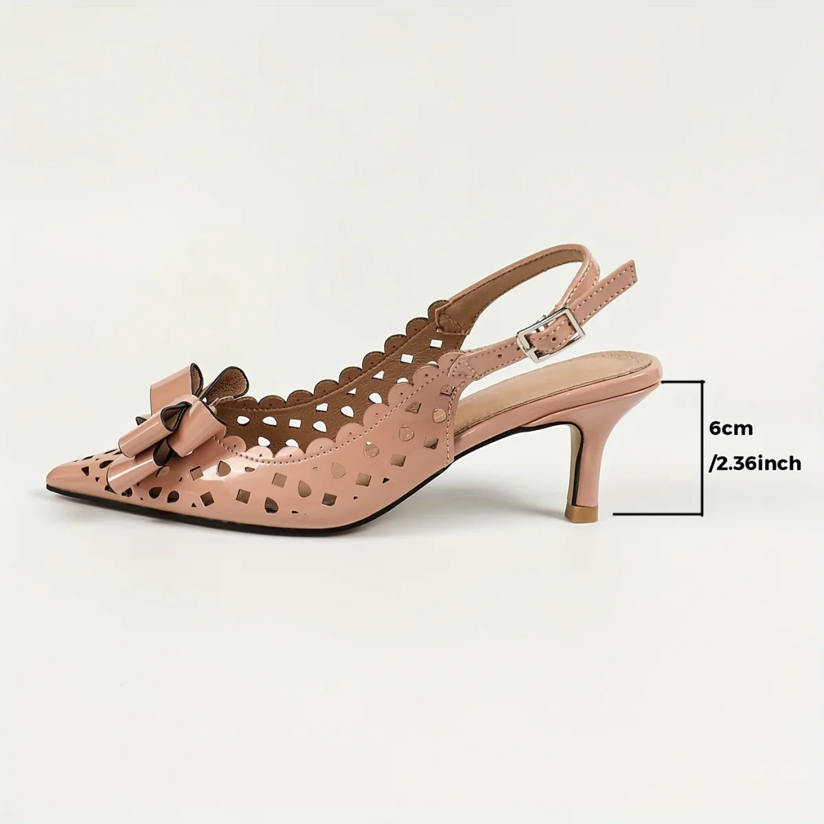 Décolleté rosa con punta affusolata, fiocco decorativo e delicato motivo a farfalla floreale, su tacco francese da 6 cm. Un modello femminile e romantico, perfetto per feste, eventi serali o occasioni speciali. I cinturini effetto bungee donano stabilità e un tocco originale. Realizzate con materiali sintetici e suola in TPU, con finiture curate e una calzata confortevole.