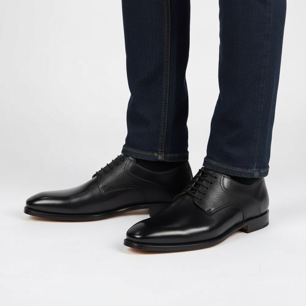 Derby in Black Leather with Details