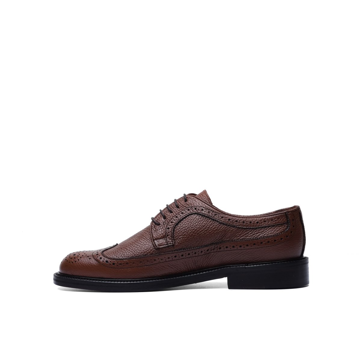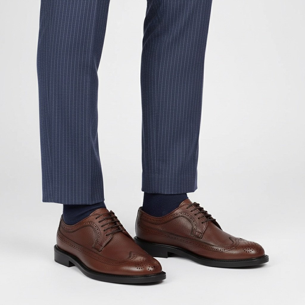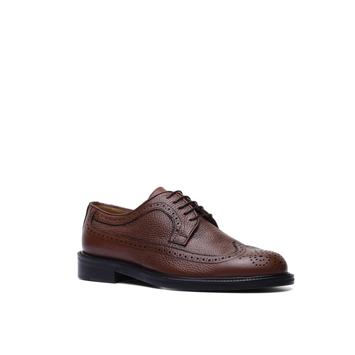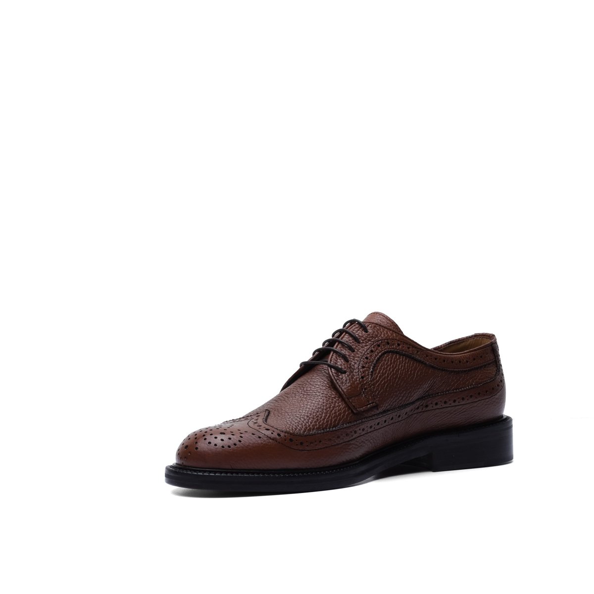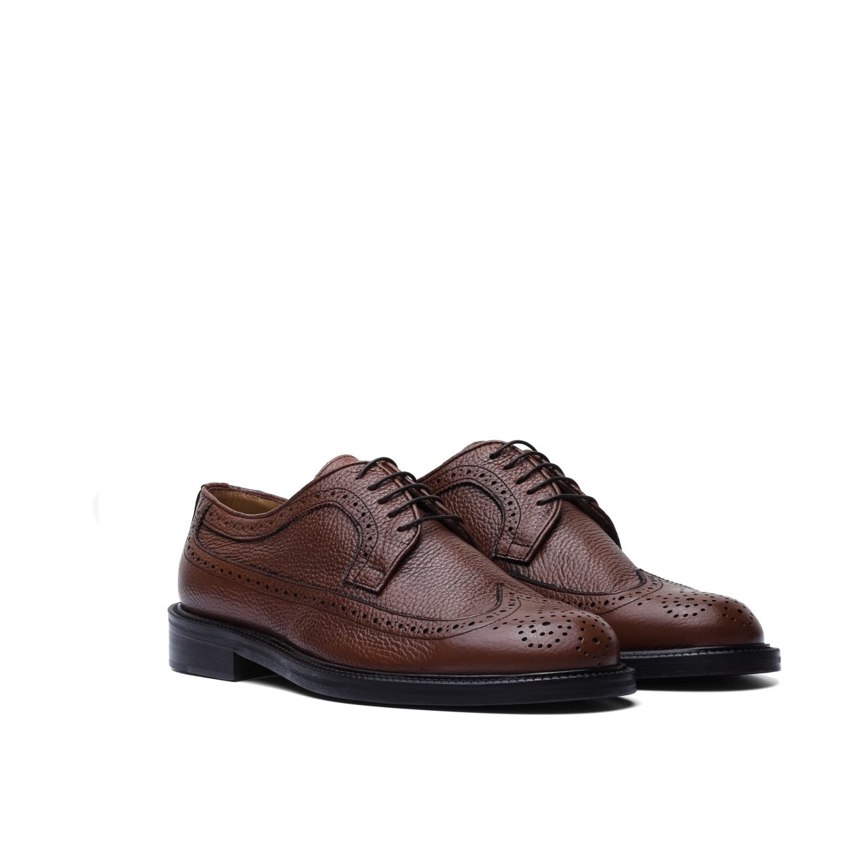 Calzatura artigianale made in Italy modello Derby stringata, caratterizzata dal disegno brogue lungo tutta la tomaia.