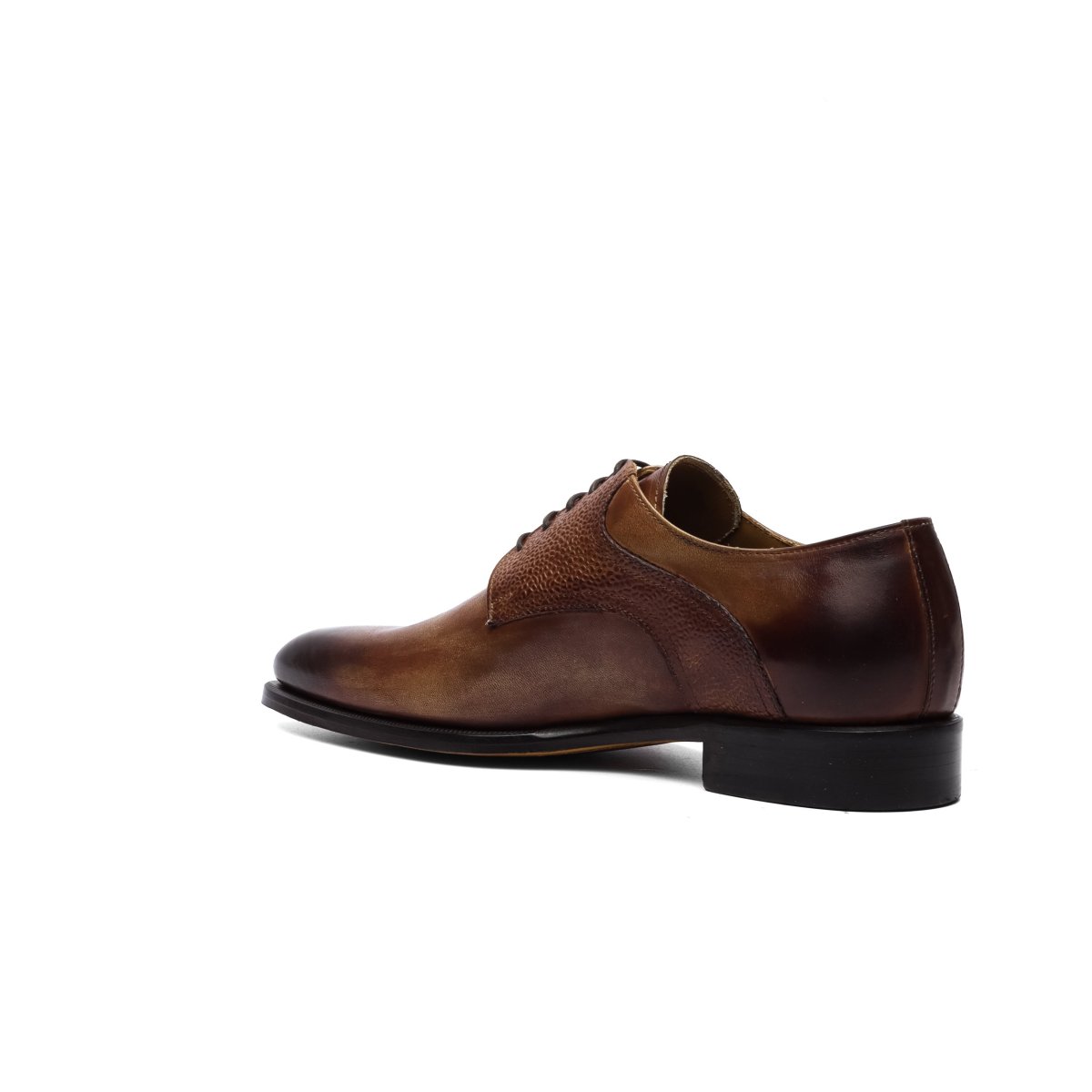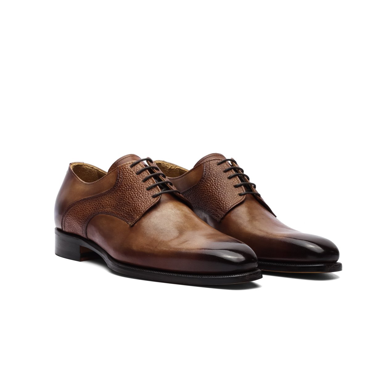 Realizzate in pelle di vitello tinta a mano nel colore marrone con punte e talloni sfumate.