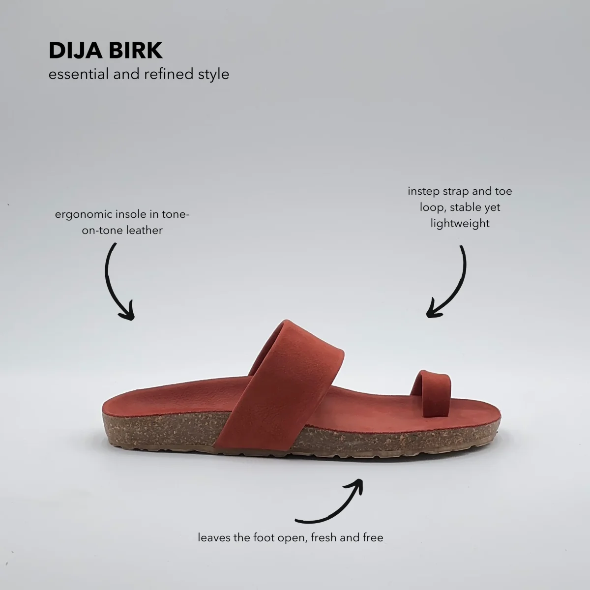 Sandalo flat in pelle Long Beach color cuoio inglese con suola ergonomica rivestita nello stesso materiale.Fascetta sul collo del piede e anello per l’alluce, essenziale ed elegante. Comodo e artigianale, ideale per la bella stagione.