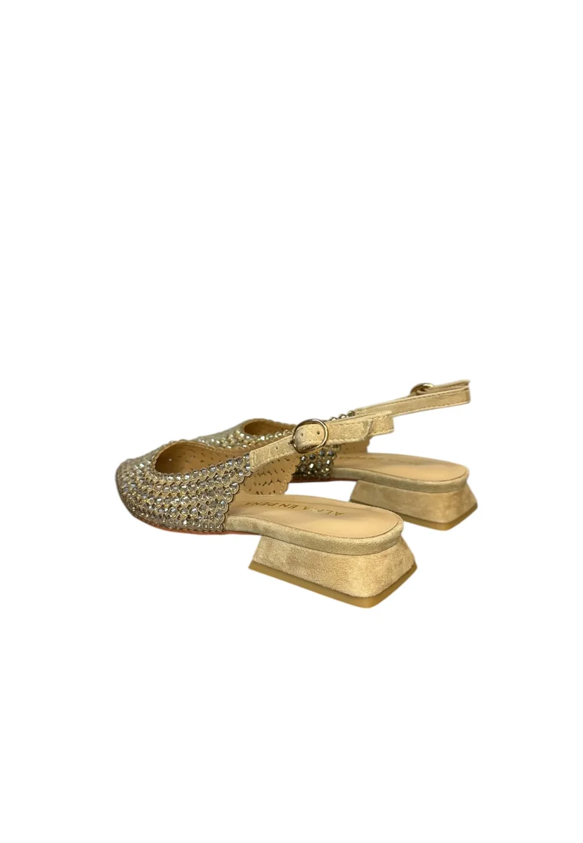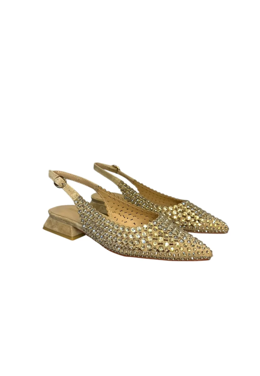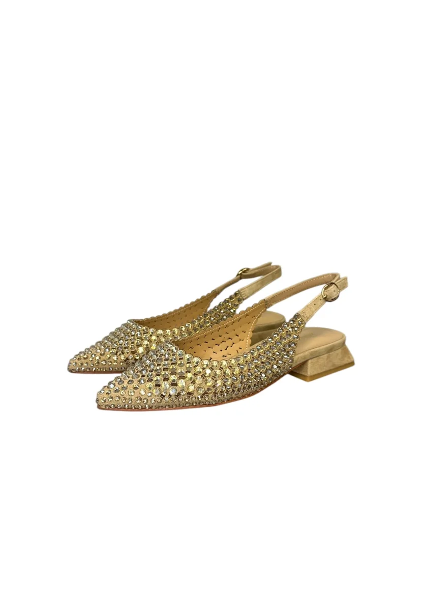 sandallo basso con tacco da 2 cm,ricoperto di pietre