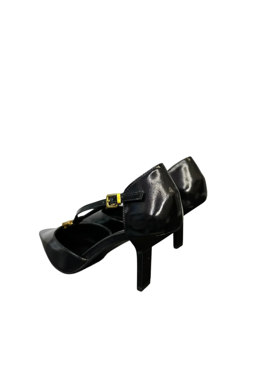 Decolletè in vernice nero. Interno in pelle. Tacco 7,5 cm. Fondo in vero cuoio. Made in Italy.