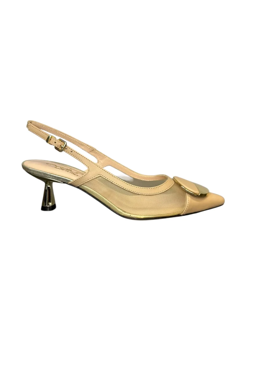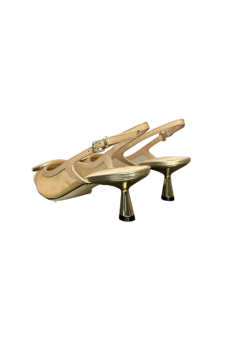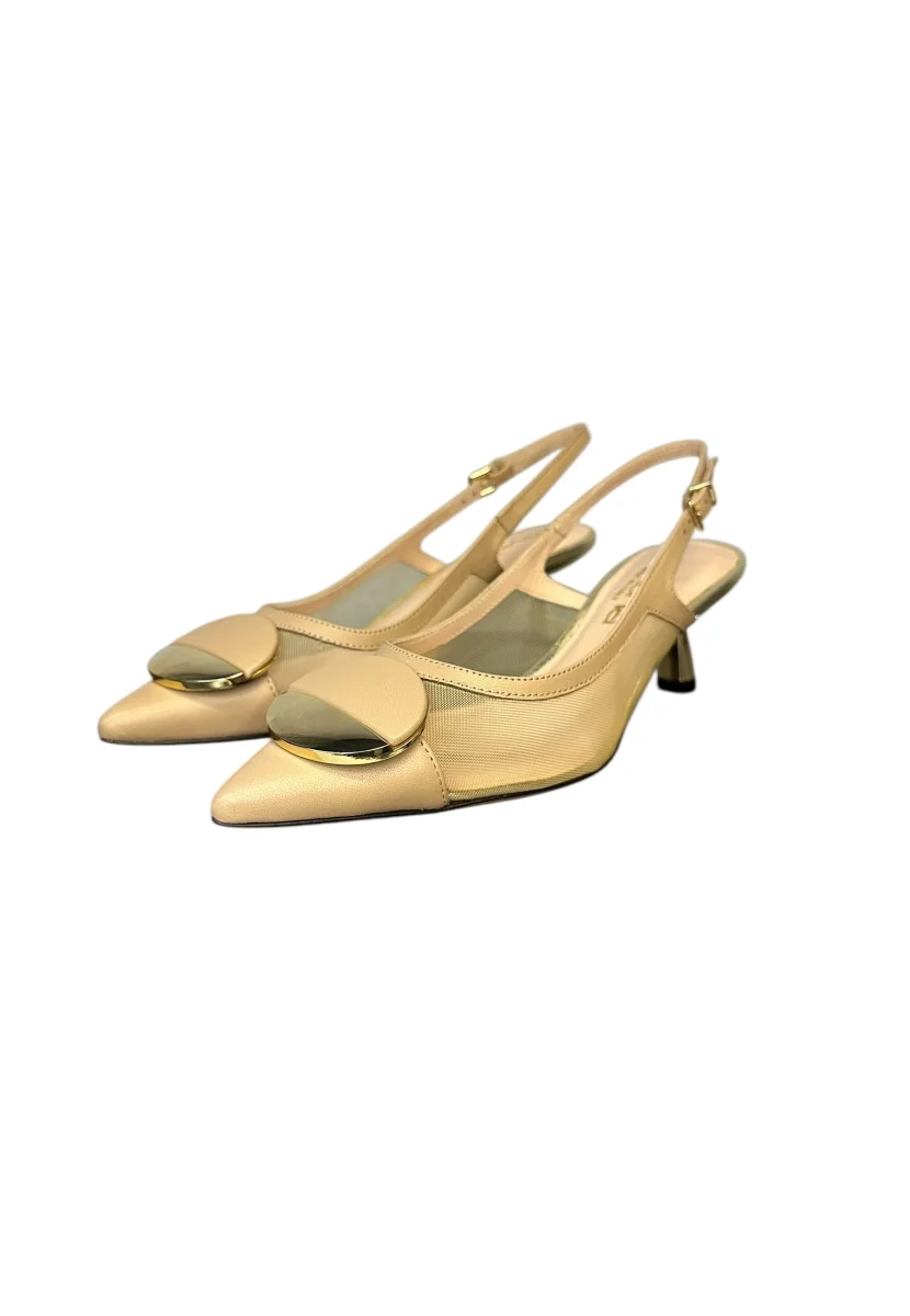 a punta sling back cinturino su tallone dettaglio trasparente suola in cuoio tacco 6 cm Made in Italy 100% pelle