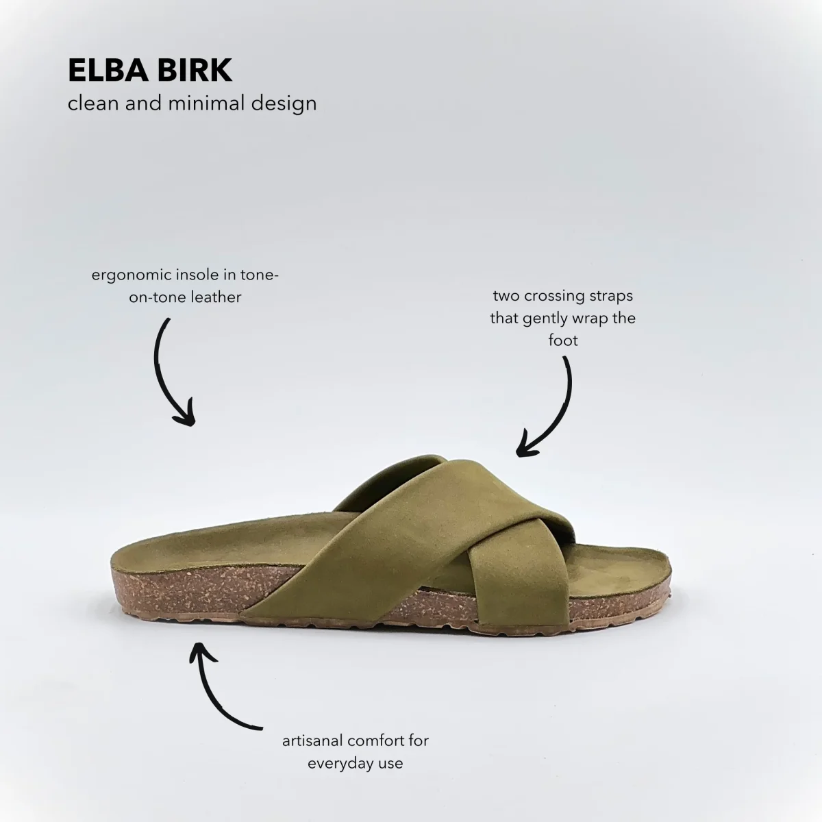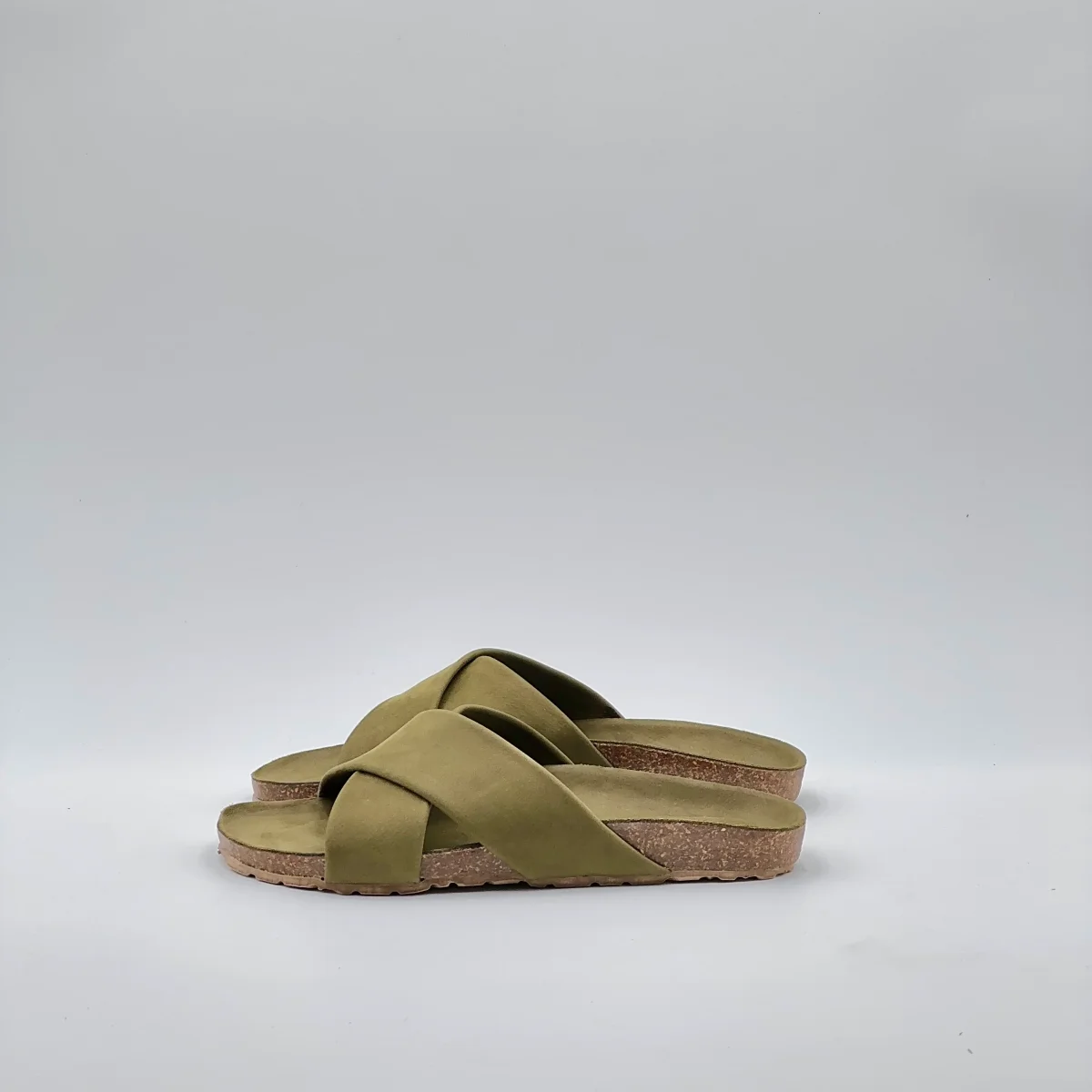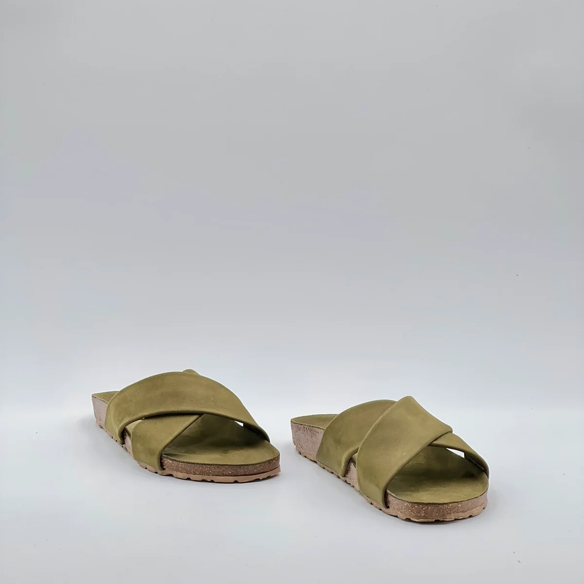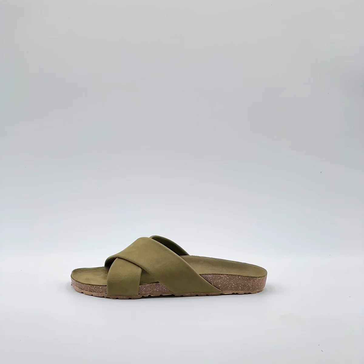 Sandalo flat in pelle Long Beach color carciofo con suola ergonomica rivestita nello stesso materiale. Fasce incrociate che abbracciano il piede con semplicità naturale.Stile essenziale e comfort quotidiano, ideale per l’estate.