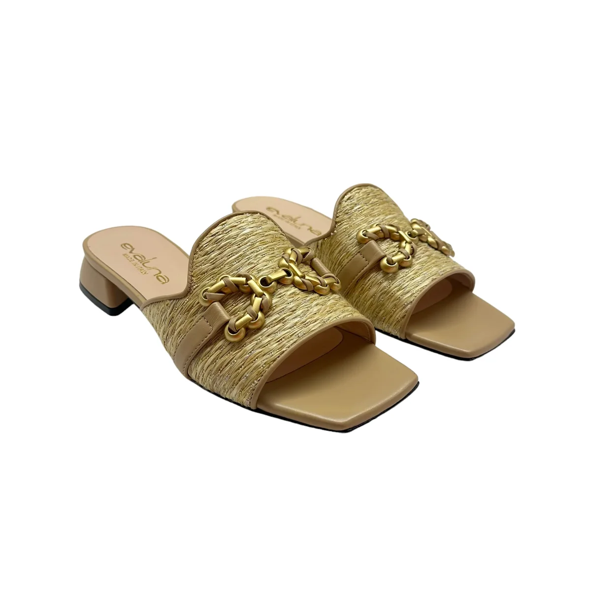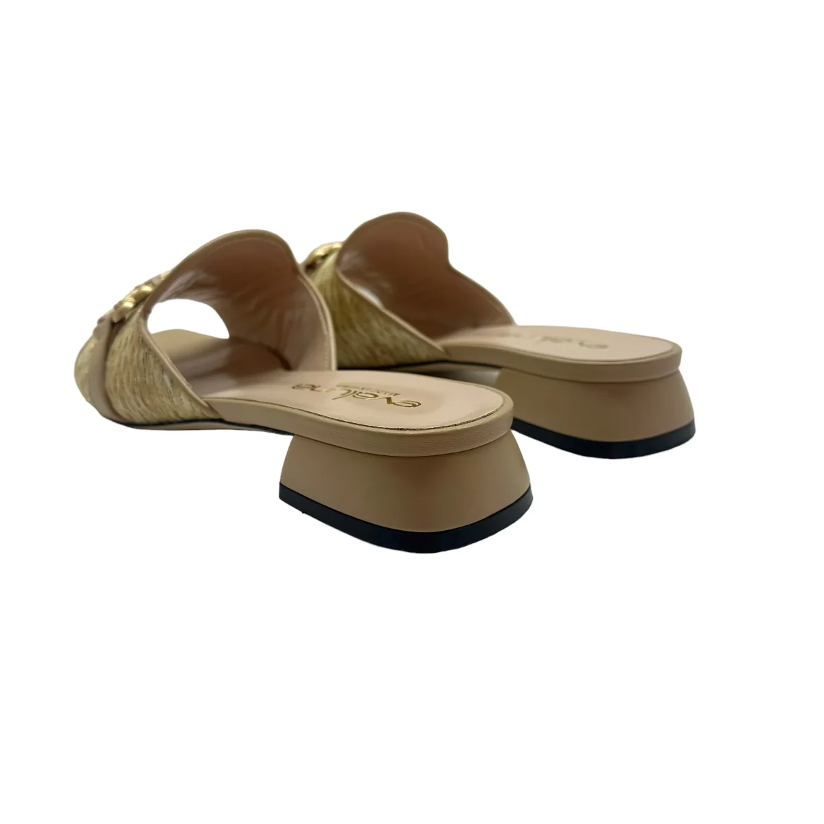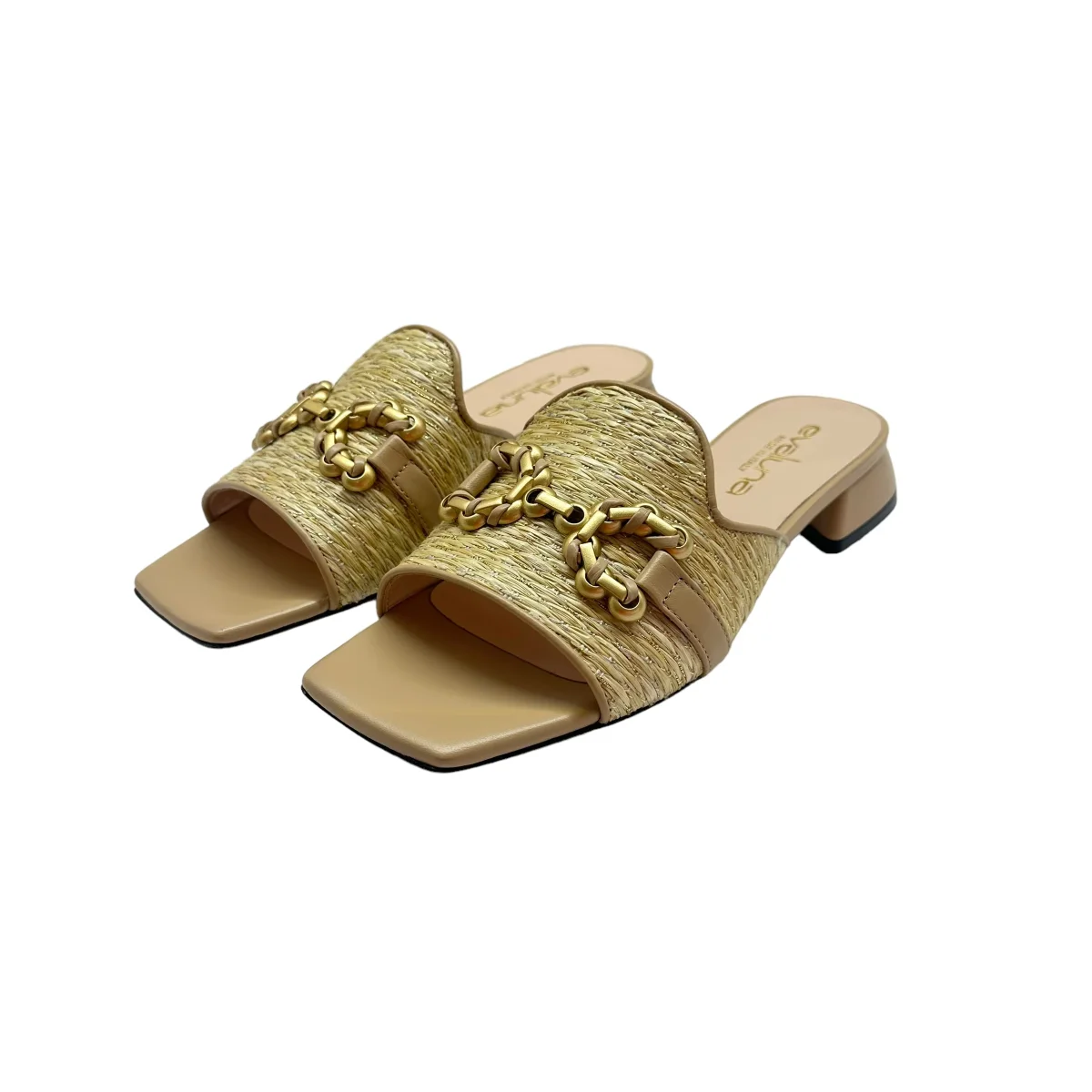 Ciabatta in raffia con dettagli in pelle e accessorio