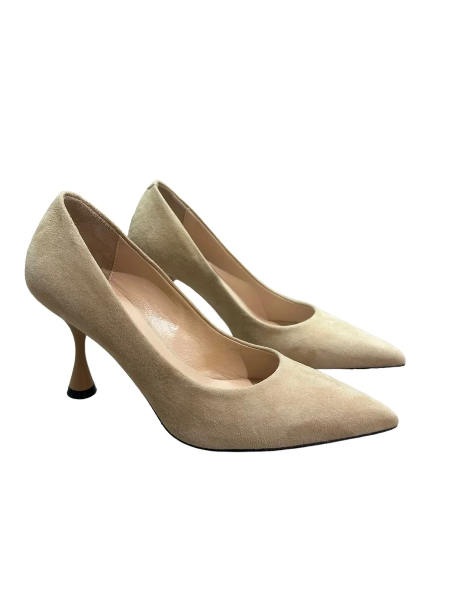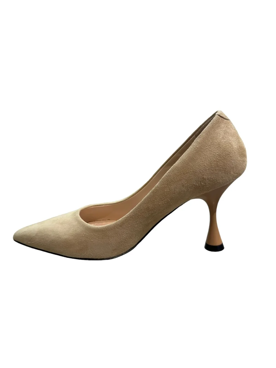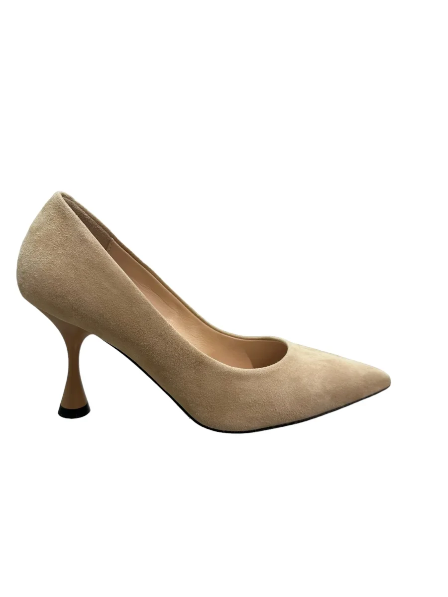 Decolleté in camoscio beige, fondo cuoio, altezza tacco 8cm